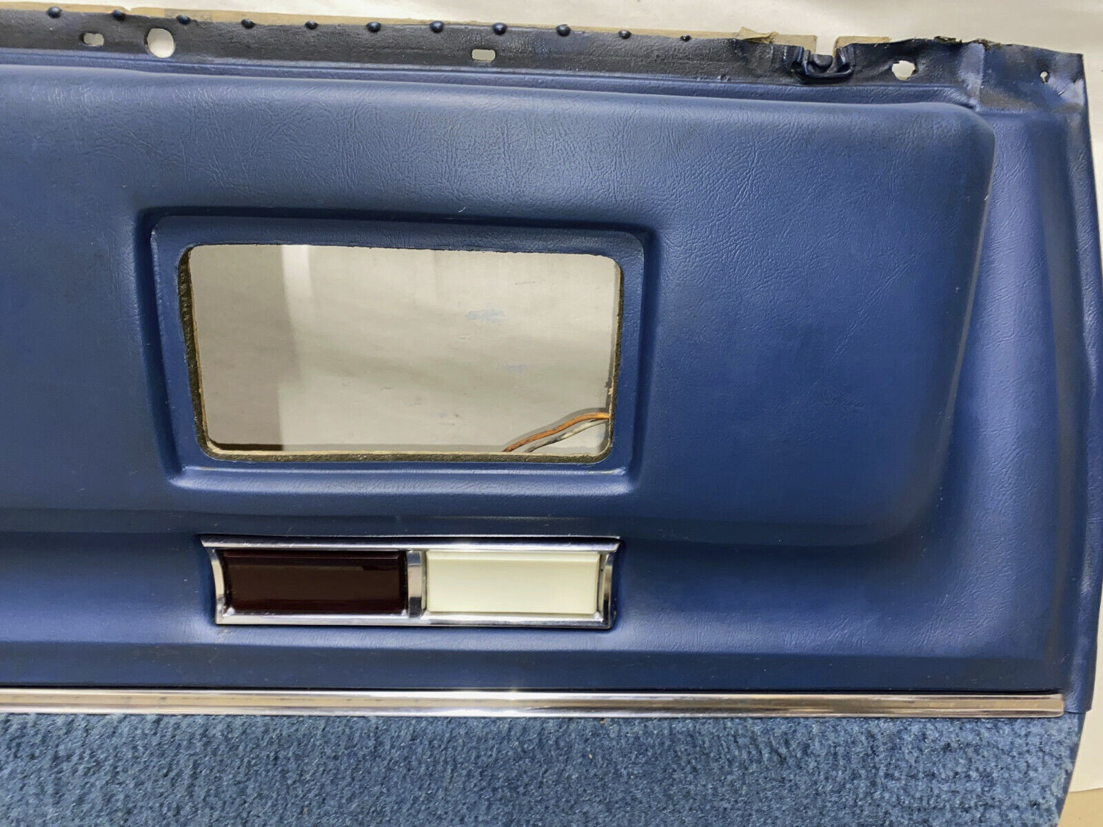 intact, no cracks, overall very minor wear for its age. Carpet is in excellent condition. Chrome trim has a nice shine. Courtesy light is UNTESTED. Cardboard backer is solid, not water damaged, has average wear for its age. Fits 4 door only. Please look at all pictures