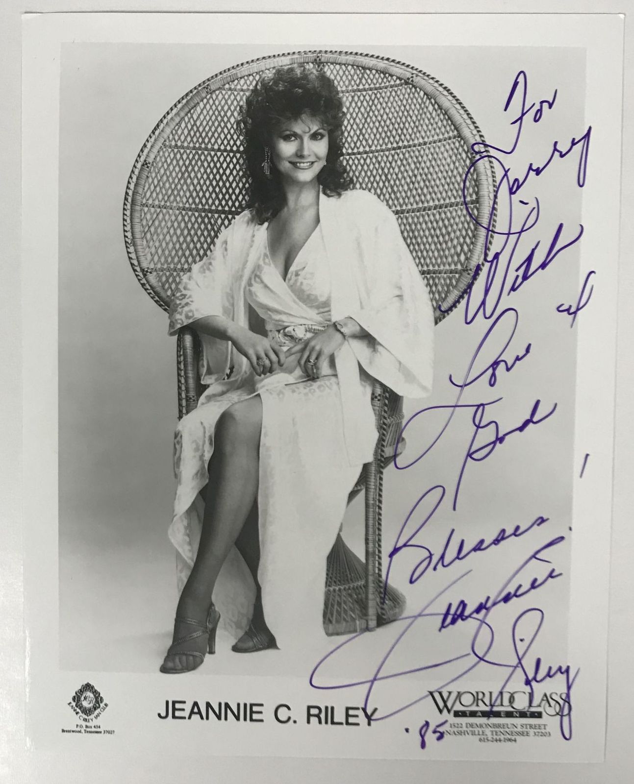 Jeannie C. Riley Signed Autographed Glossy 8x10 Photo