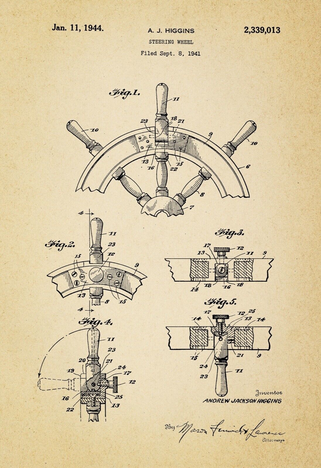 12971.Decor Poster.Wall art.Vintage Room home design.Patent.Boat ship Wheel