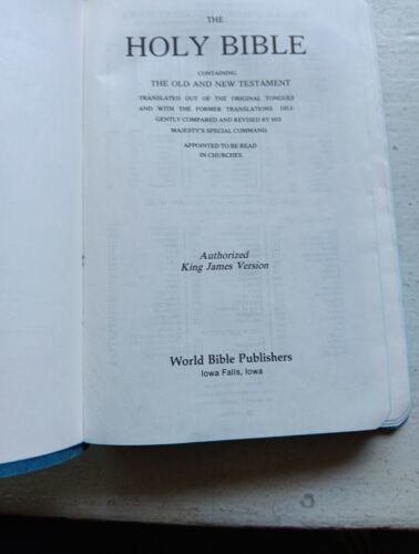 Corner of soft cover is chipped, please see photo. Stamp from bookstore stamped in front. Red Letter Edition. Authorized King James Version. New Old Testaments, Dictionary and Concordance. I see NO writing throughout, Pages are smooth and clean.