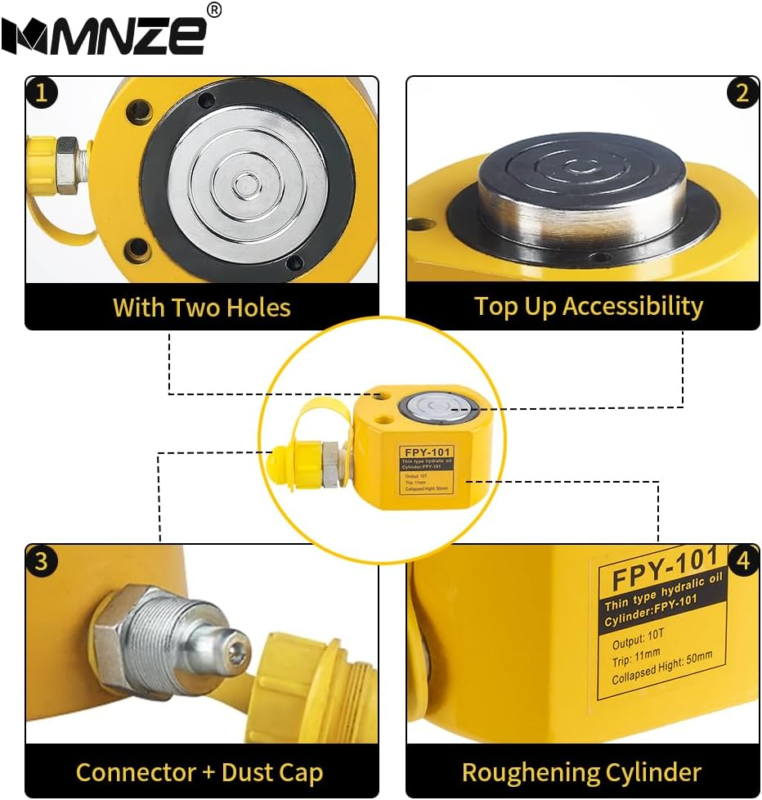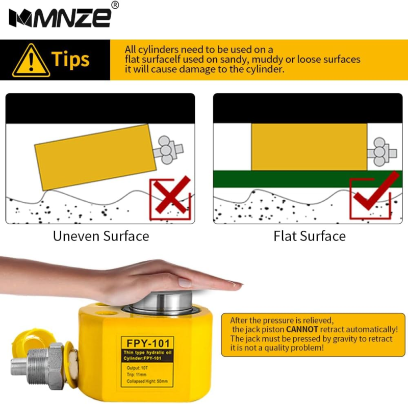 The tonnage is sufficient, the stroke is sufficient, will not be stuck or burst cylinders. After the pressure is released, the jack can automatically retract. Vertical, horizontal and inverted orientations are available. Can be used in narrow spaces. All cylinders need to be used on firm and flat surfaces, not on soft or rough surfaces. Please note that incorrect use will likely damage the jack or cause serious safety accidents.