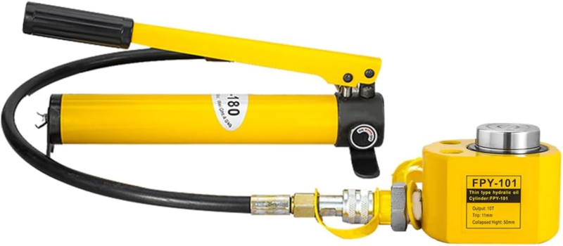Manual hydraulic pump consists of ZG3/8 connector, hydraulic pump body, anti-slip handle, oil return switch and oil hose. The surface of hydraulic cylinder jack and hand pump is smooth, with good sealing and no oil leakage. The whole is made of heavy-duty metal structure, which is durable.