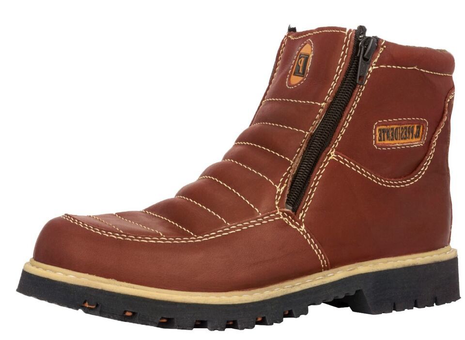 Mens Cognac Work Boots Rubber Sole Slip Resistant Shoes Zip Up