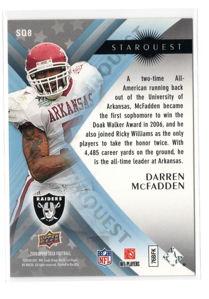 2008 Upper Deck Starquest Blue Darren McFadden #SQ8 Rookie Arkansas Raiders NFL
