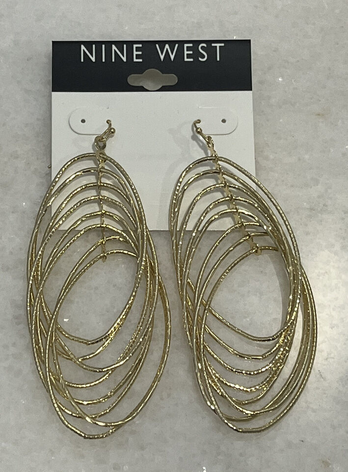 Nine West Abstract Gold Tone Drop Dangle Statement Earrings NWT