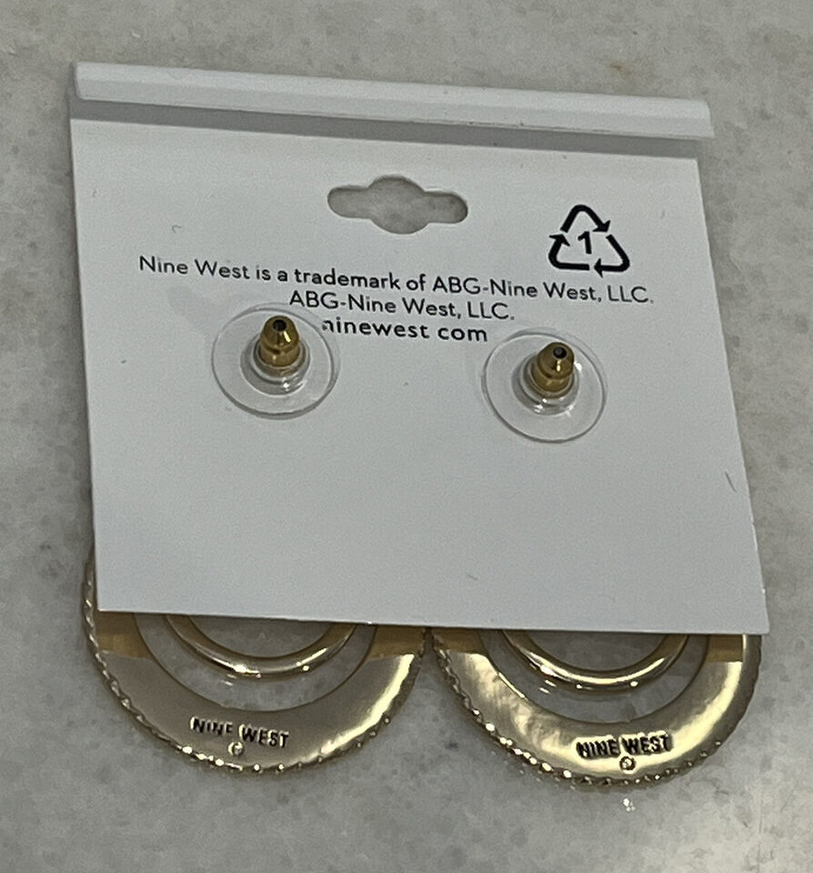 Nine West Gold Tone Round Open Work Circle Earrings NWT