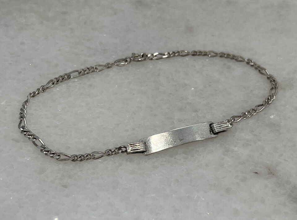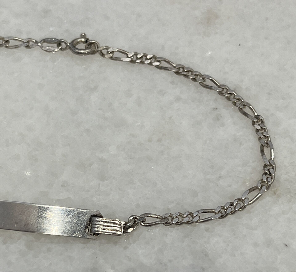 Vintage Sterling Silver 925 Figaro ID Name Bracelet.