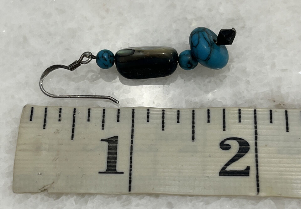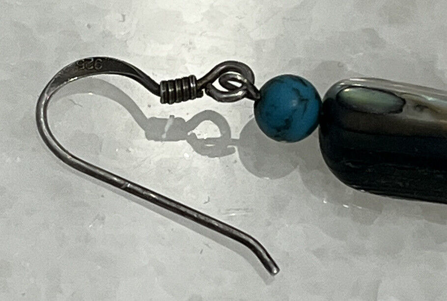 Sterling Silver 925 Faux Turquoise Abalone Drop Dangle Hook Earrings.