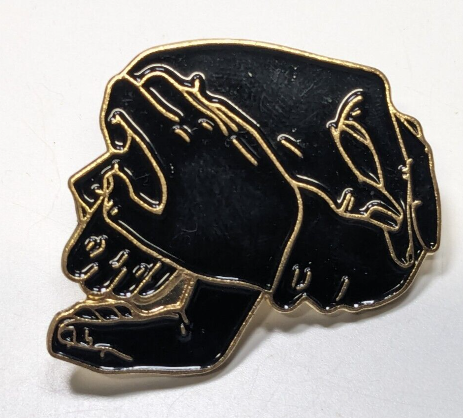 Gold Tone Black Skull - Made from Hands - Enamel Backpack Hat Pin
