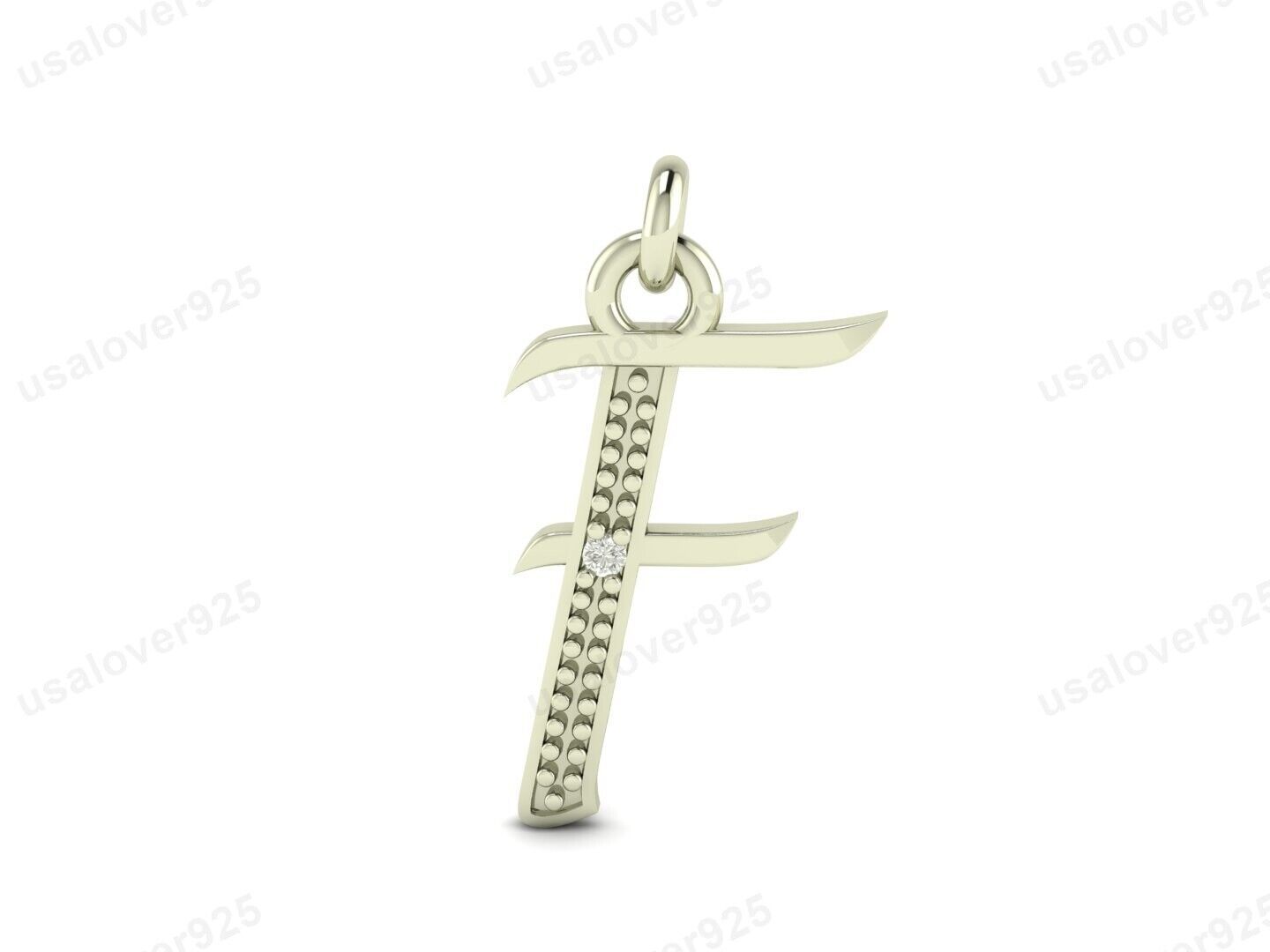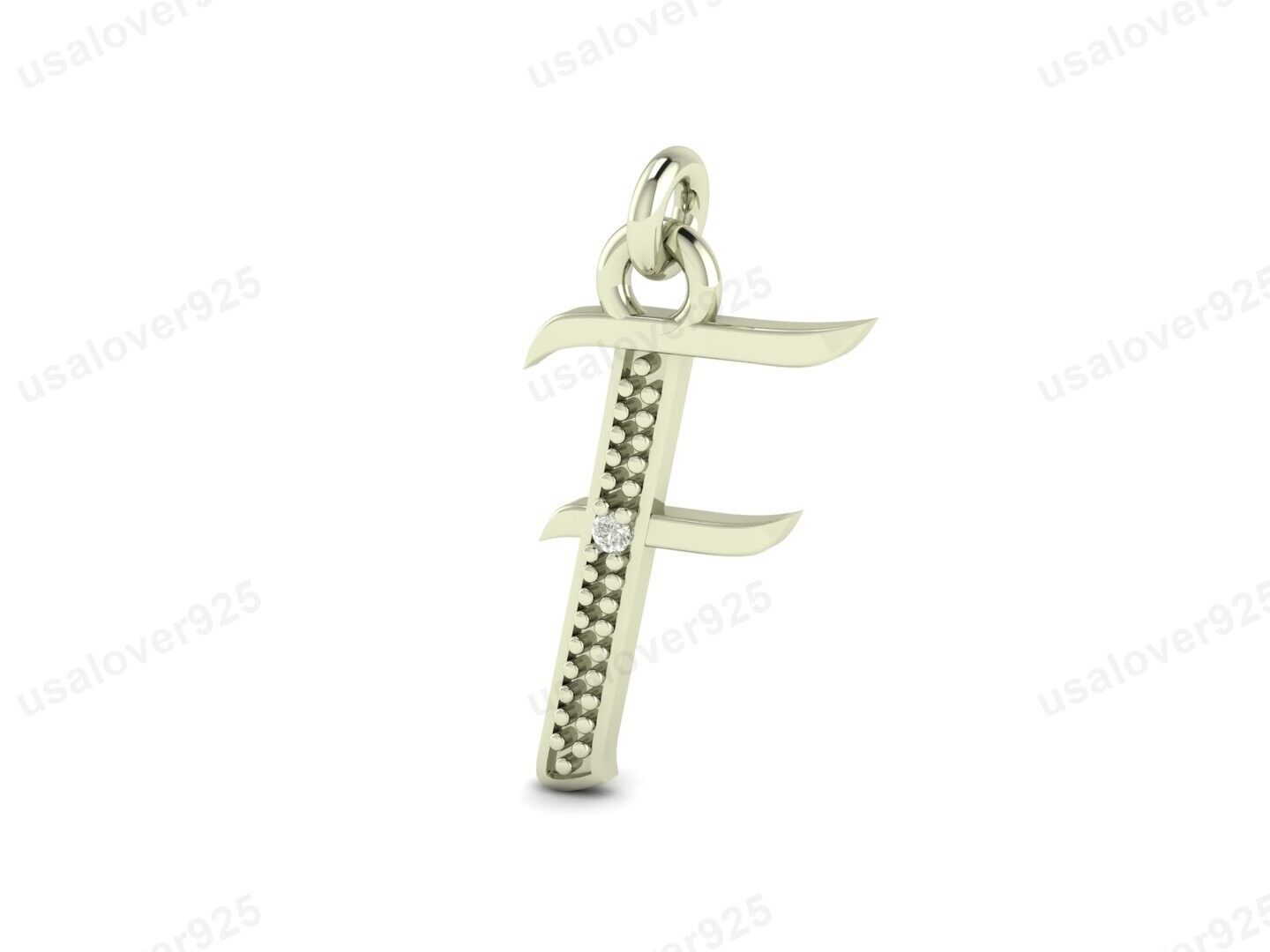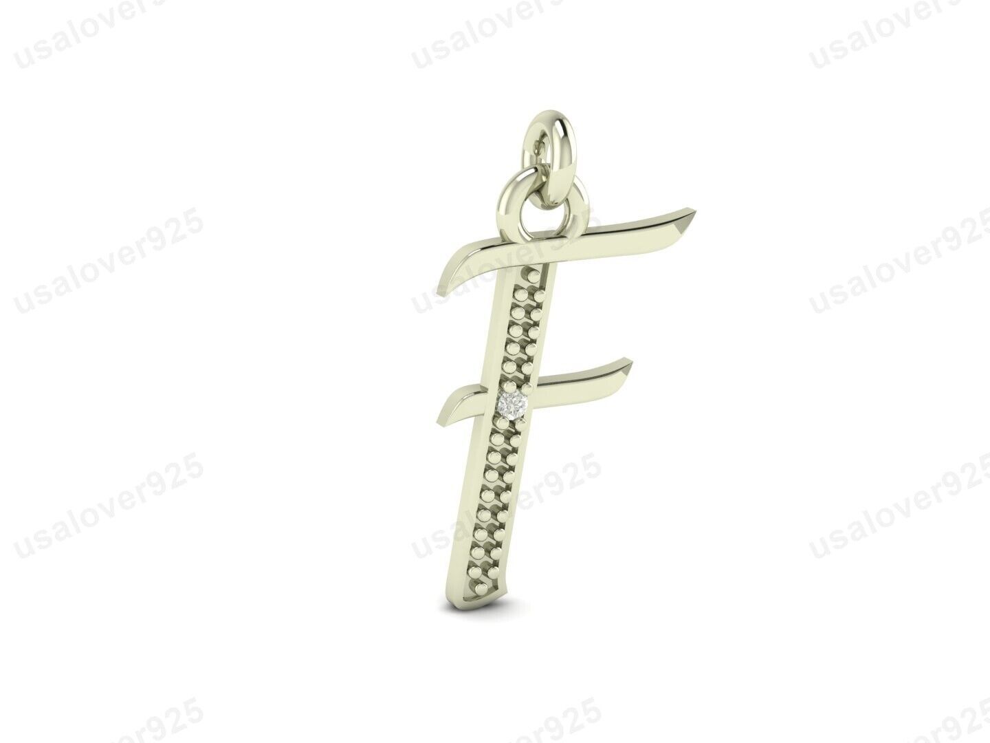 F Alphabet Diamond Stone 925 Sterling Silver Handmade Unique Pendant Jewelry