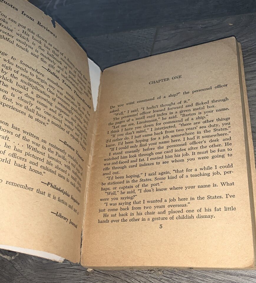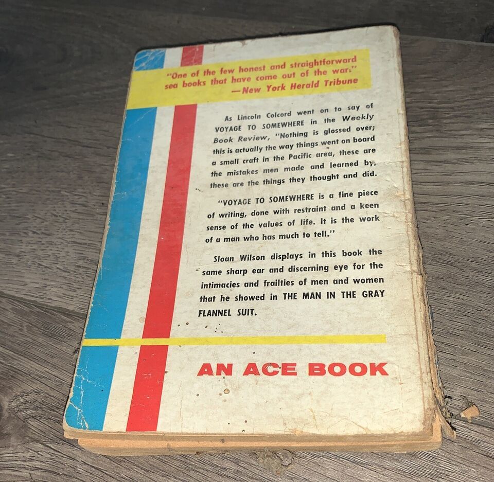 Explore the captivating pages of this vintage paperback book titled "Voyage to Somewhere" written by the acclaimed author Sloan Wilson. Published by Wilson in 1946, this rare find is a must-have for any book collector out there. The pages of this book are written in English and it tells the story of a voyage that takes the reader on a journey of self-discovery and adventure.