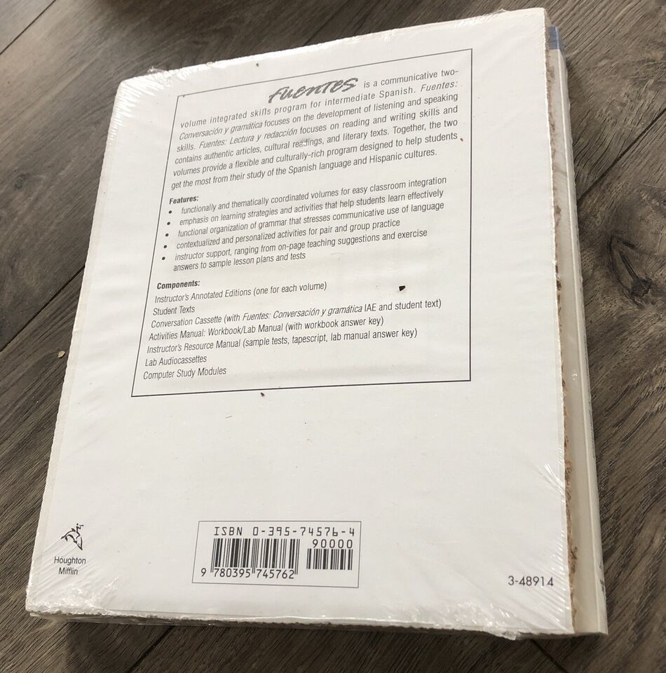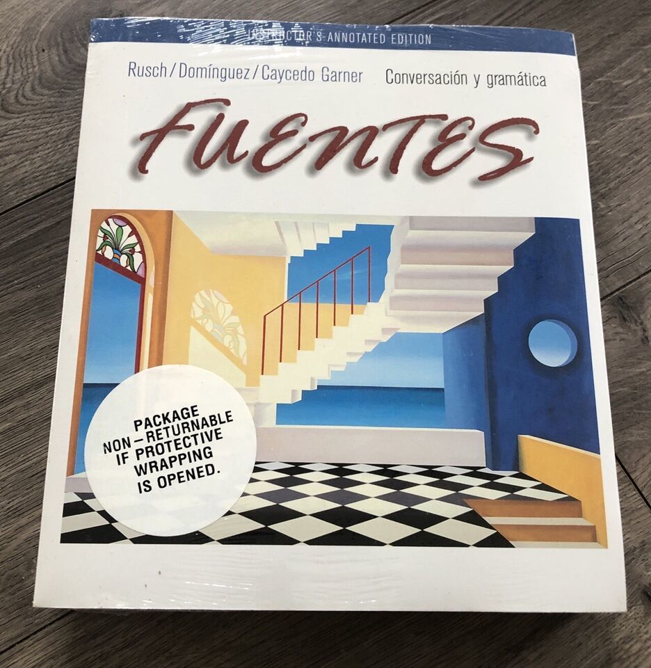 This is a sealed copy of the language course book "Fuentes, Conversacion y Gramatica" by Rusch Dominguez Caycedo Garner. It is an instructor's annotated edition, perfect for those teaching the course or individuals who want extra guidance in their language studies. The book is written in English and covers various aspects of the Spanish language.