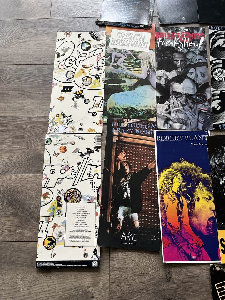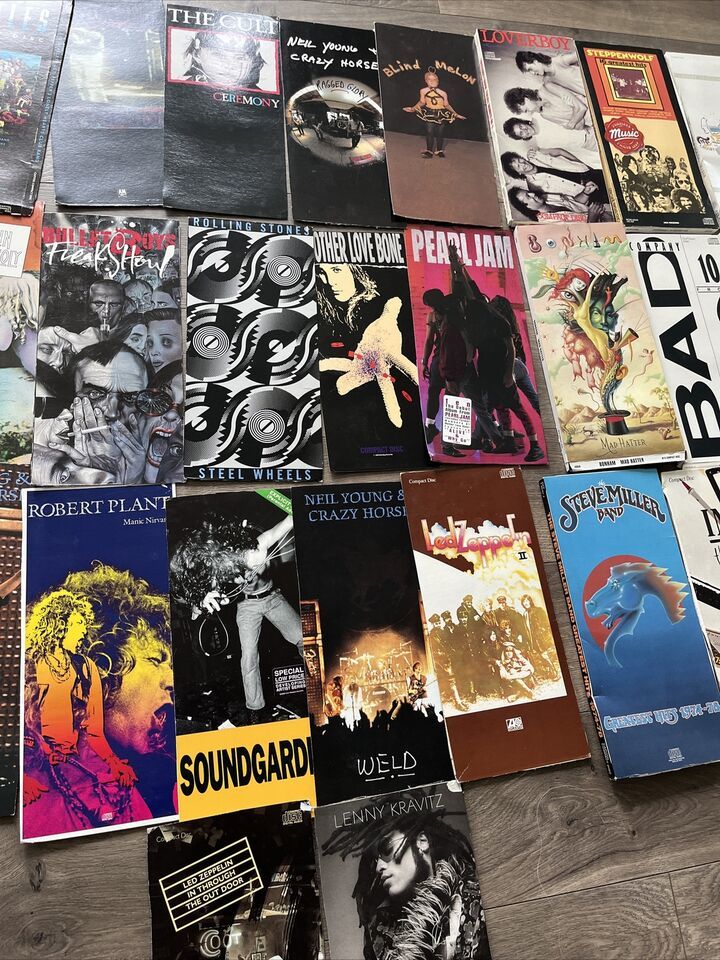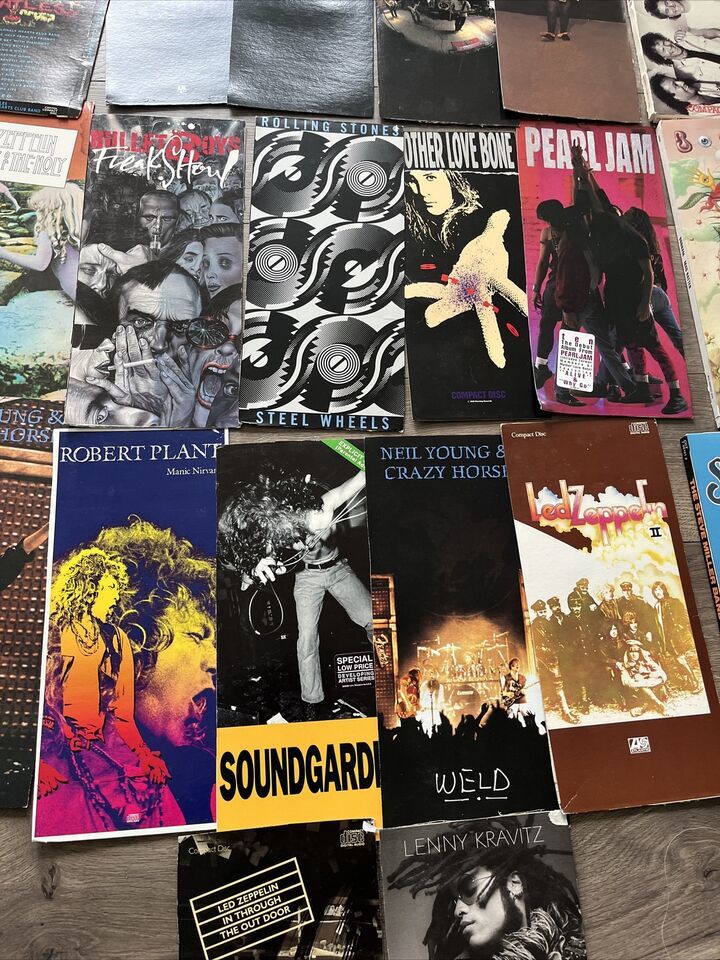 This is a rare vintage box collection featuring iconic artists such as INXS, Mother Love Bone, and the Stones. The collection includes records in excellent working order and covers all aspects of the music industry. The box art is stunning and adds to the overall appeal of this piece. This is a must-have for any music fan or collector looking to expand their collection.