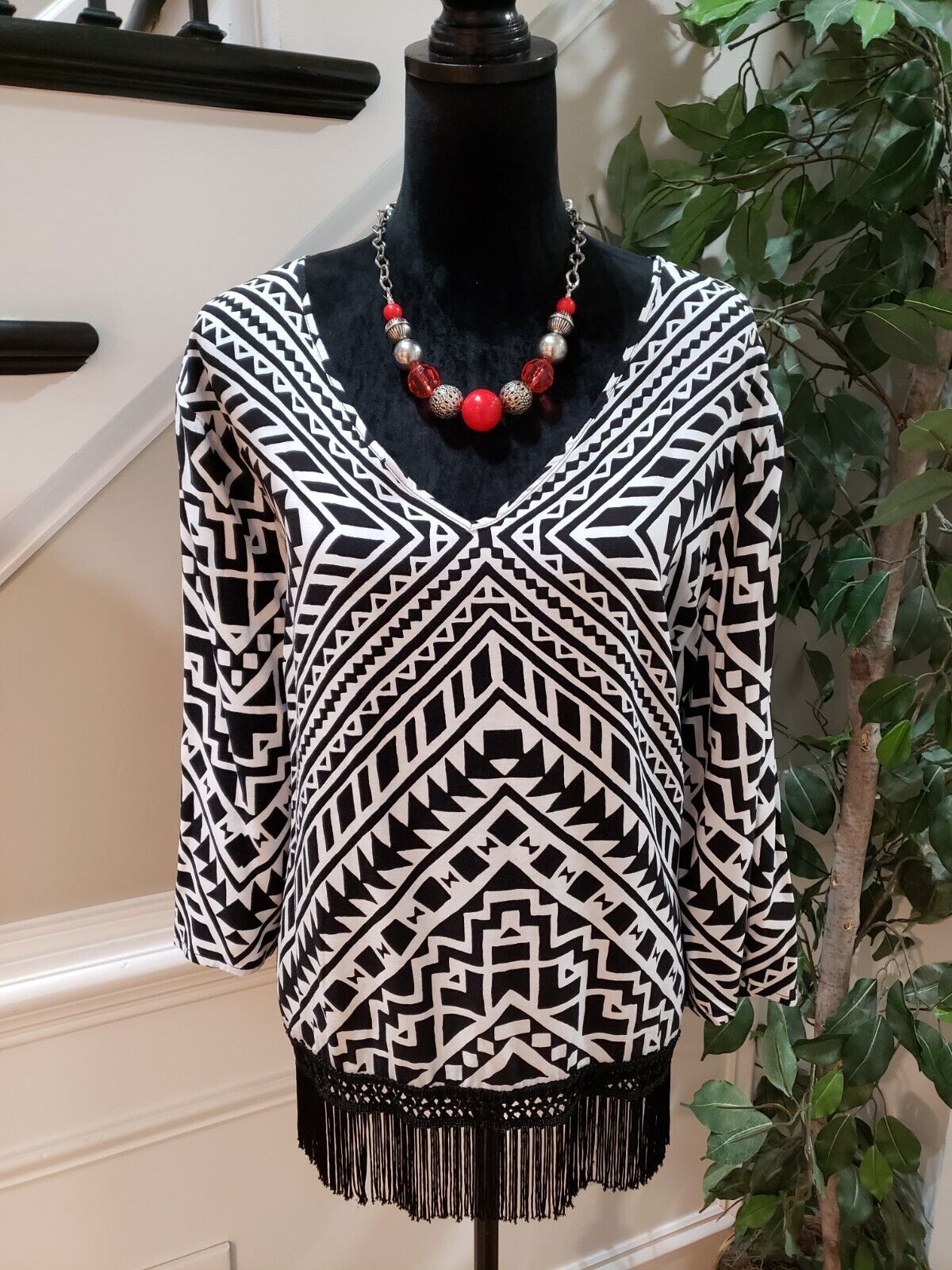 Cato Women's Black & White 100% Rayon V-Neck and similar items