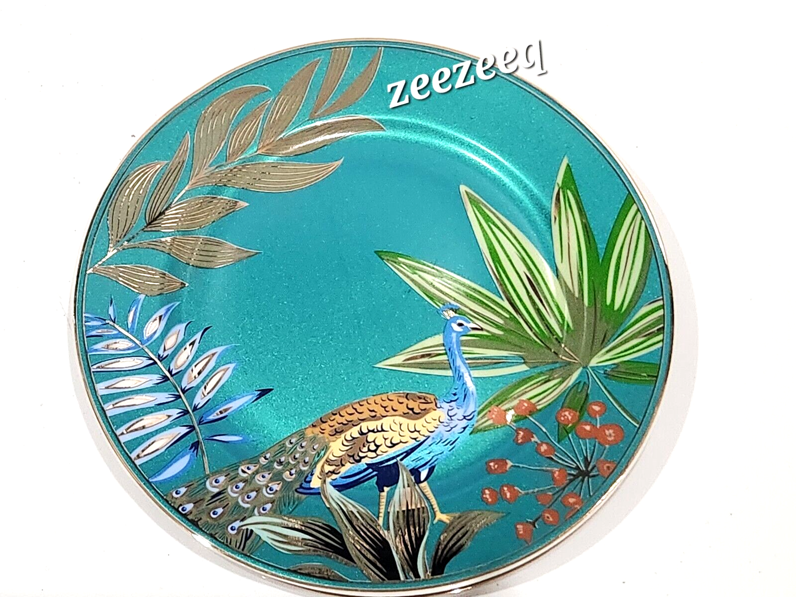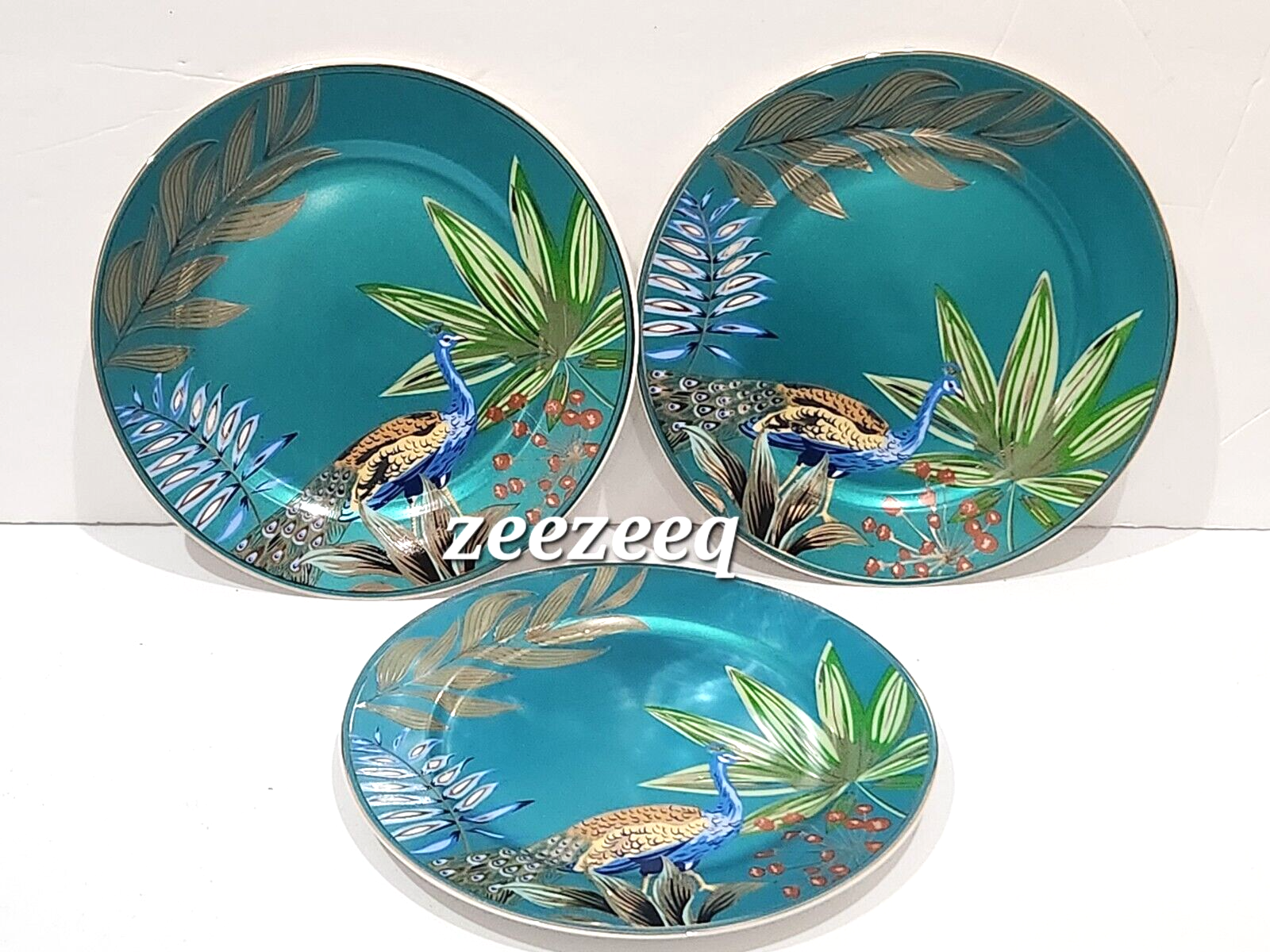 Set of 3 Grace 8" Turquoise Peacock Salad / Dessert Plates