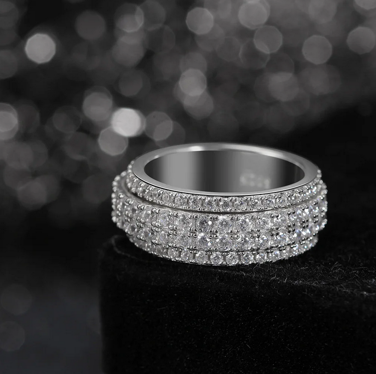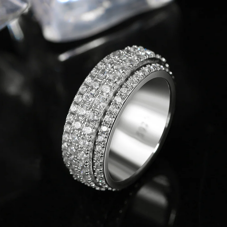 Exquisite 925 Sterling Silver 8mm Dazzling A5 Zirconia Rotation Eternity Ring
