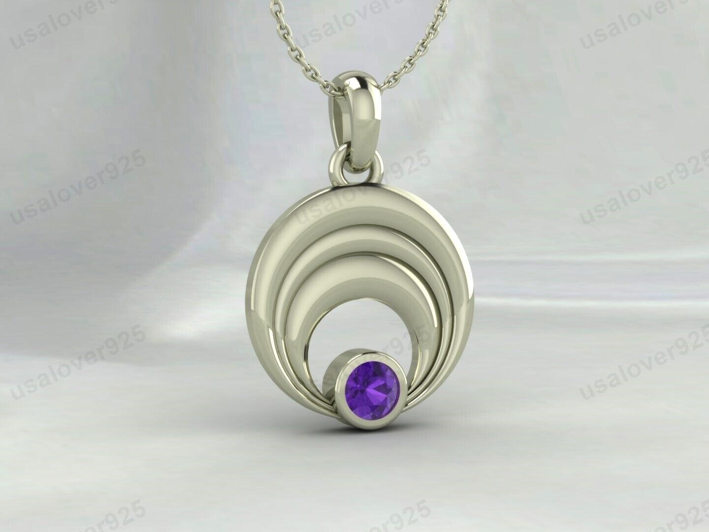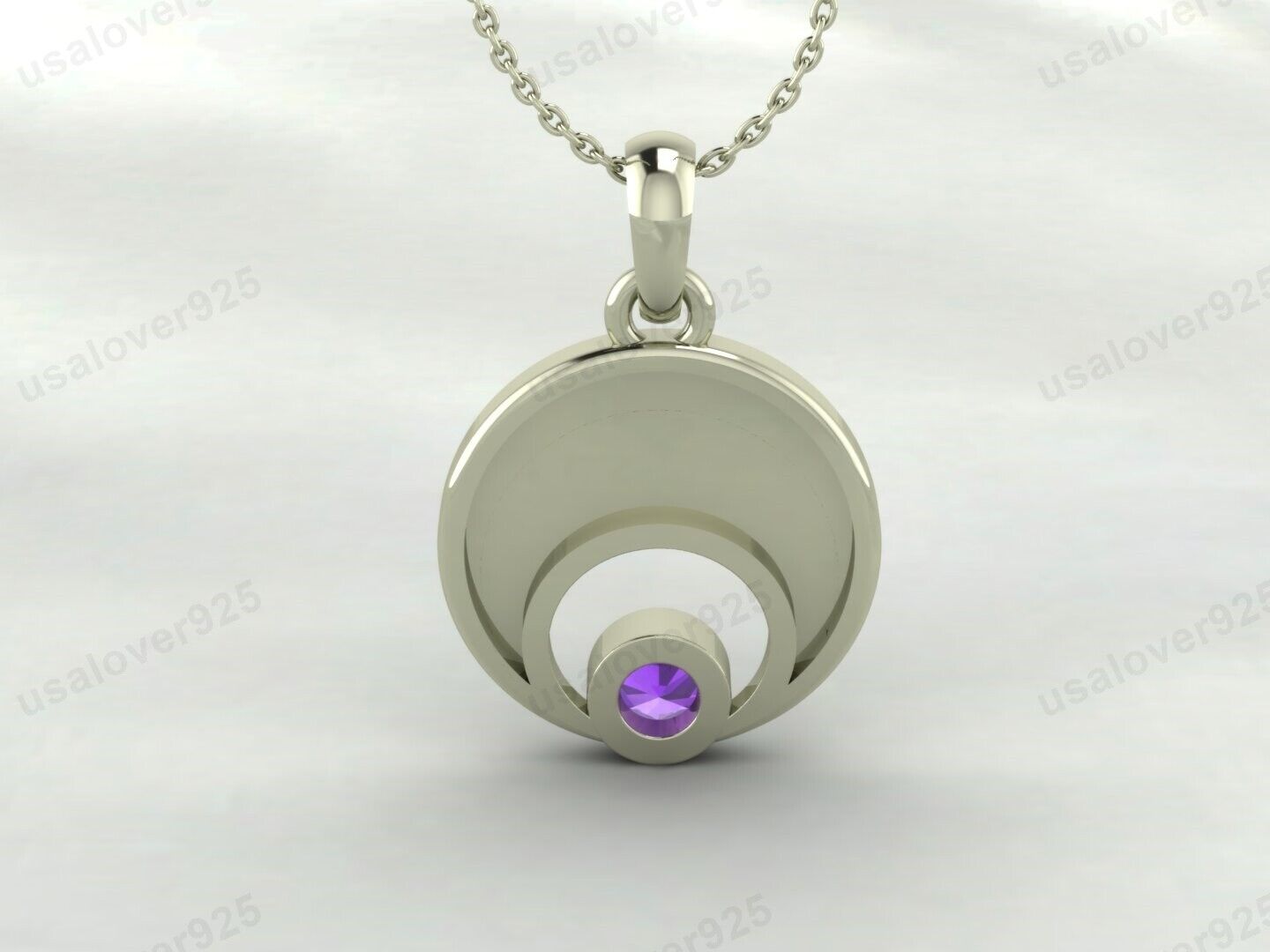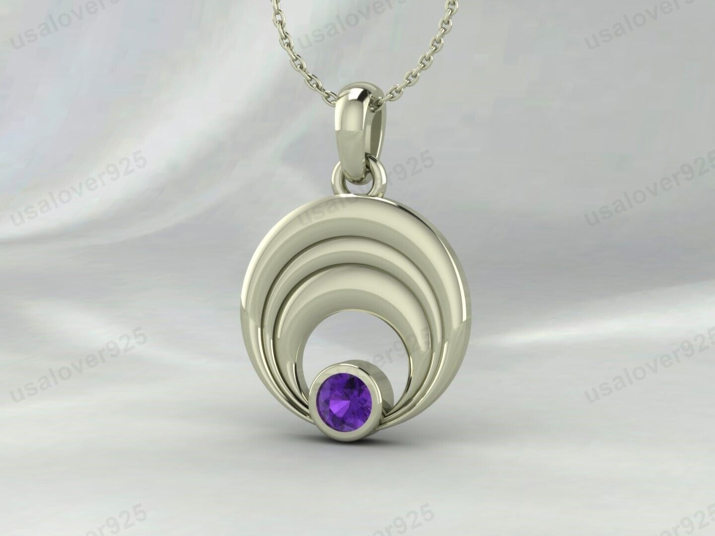 Purple Amethyst Stone 925 Sterling Silver Handmade Modern Pendant Dainty Jewelry