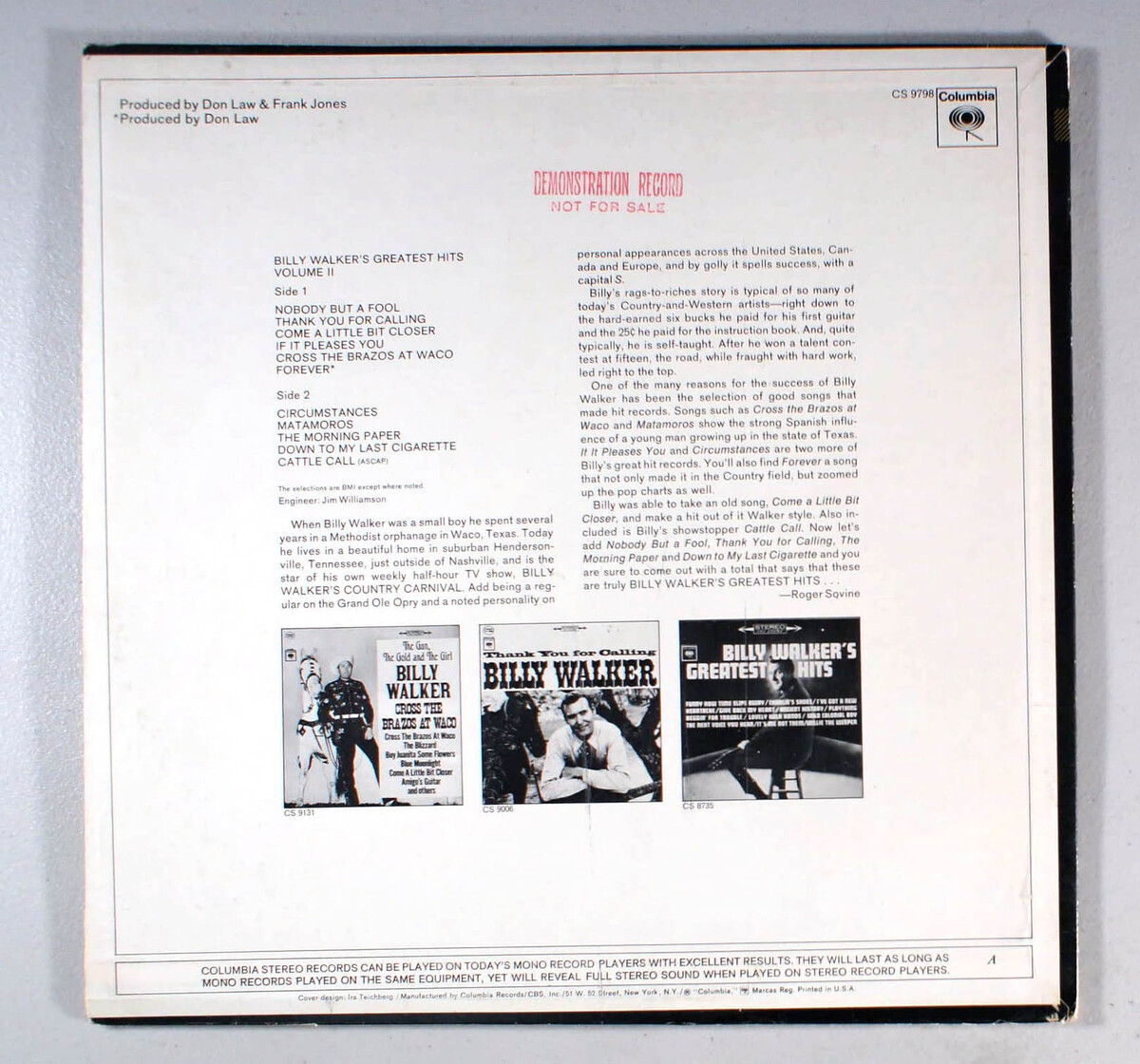 Billy Walker - Greatest Hits Volume II (1969) Vinyl LP • PROMO • Best of Forever