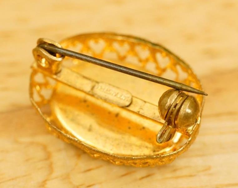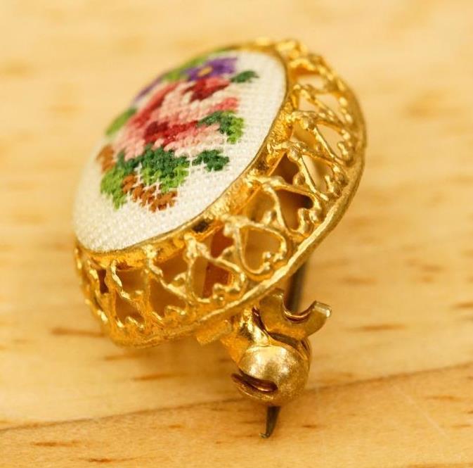 Vintage Costume Jewelry AUSTRIA Oval Petit Point Needlepoint Brooch Pin