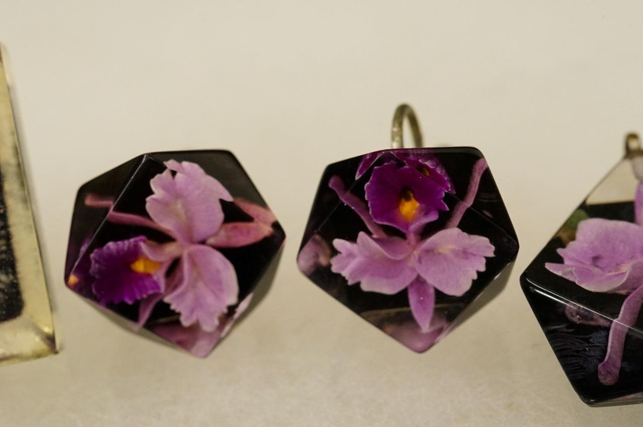 Vintage Hawaii Estate Jewelry Orchid Flower Carved Lucite Tone Purple Brooch Set