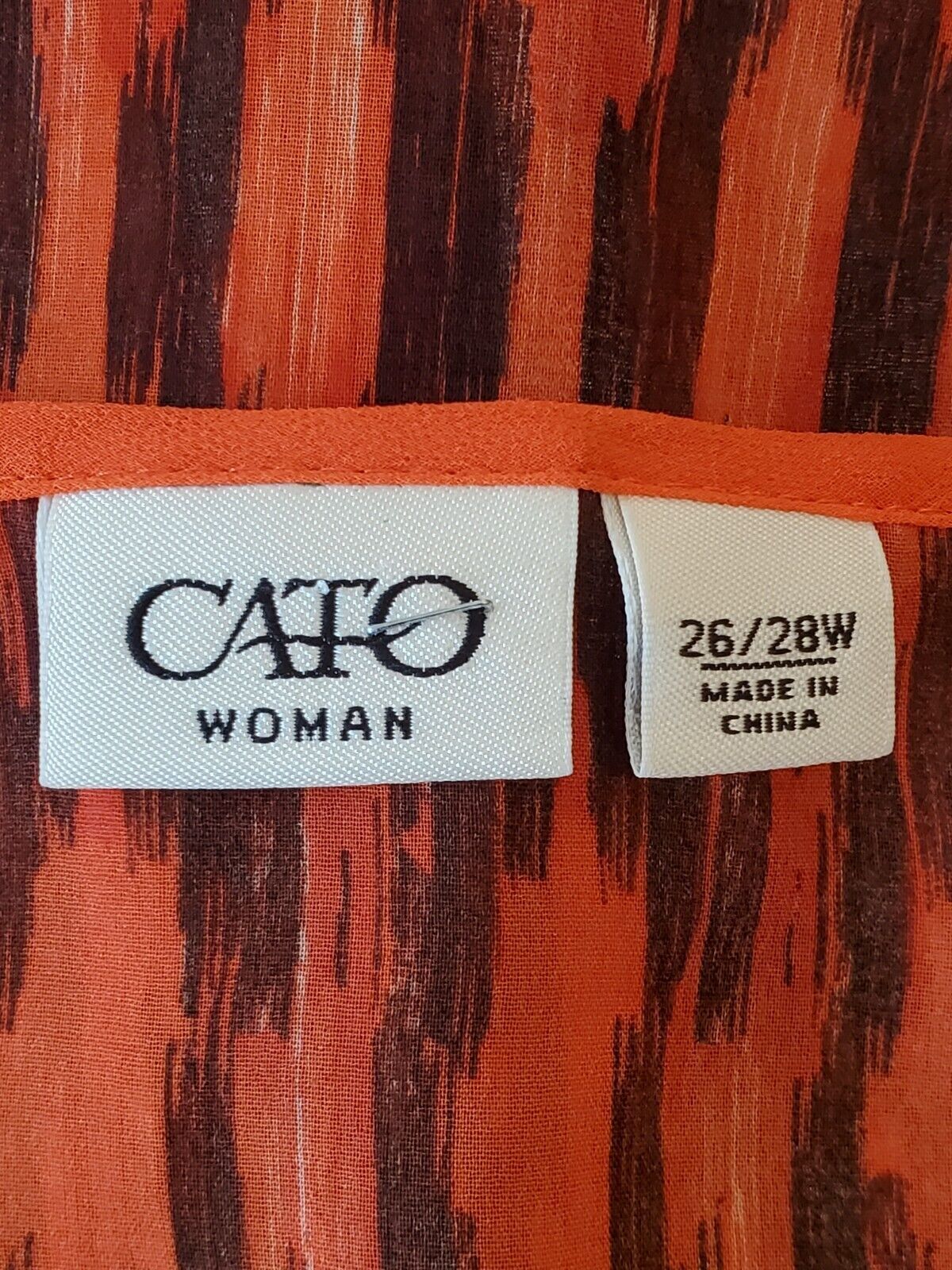 Cato Women's Orange 100% Polyester Round Neck Long Sleeve Top Blouse Size 26/28W
