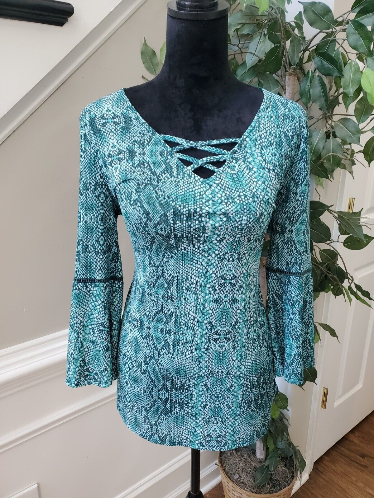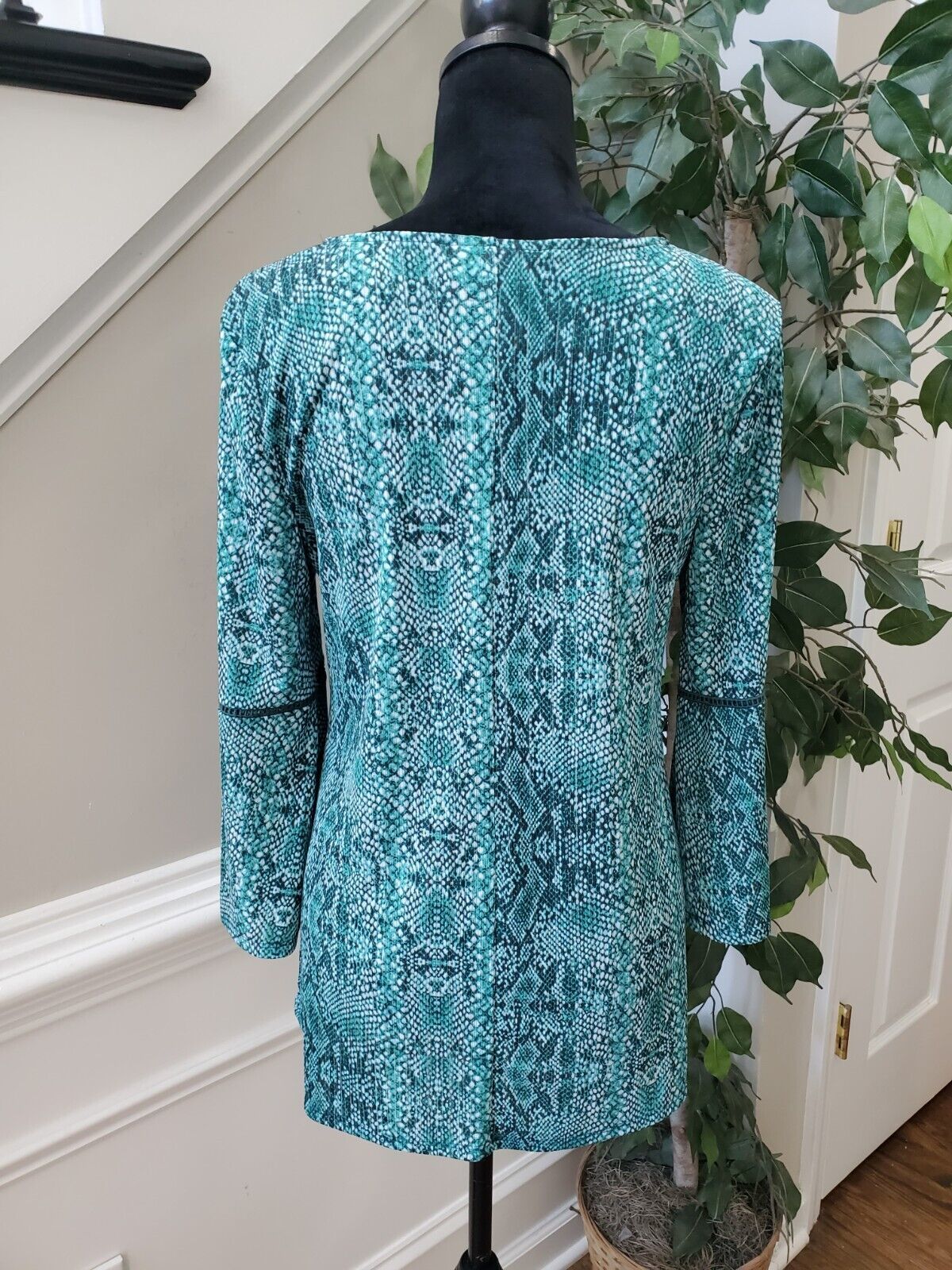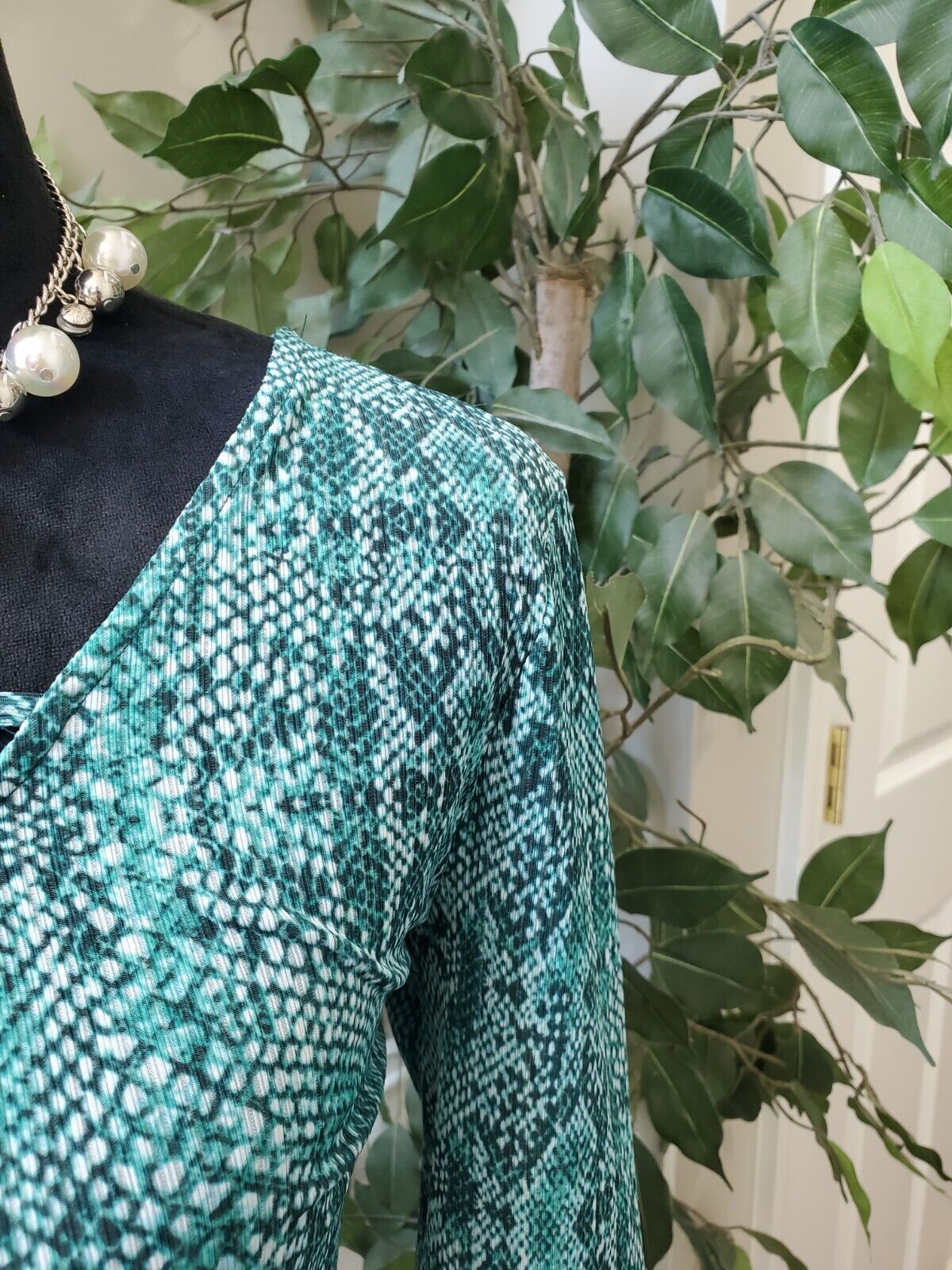 Dana Buchman Women's Green Polyester V-Neck Long Sleeve Top Blouse Size Small