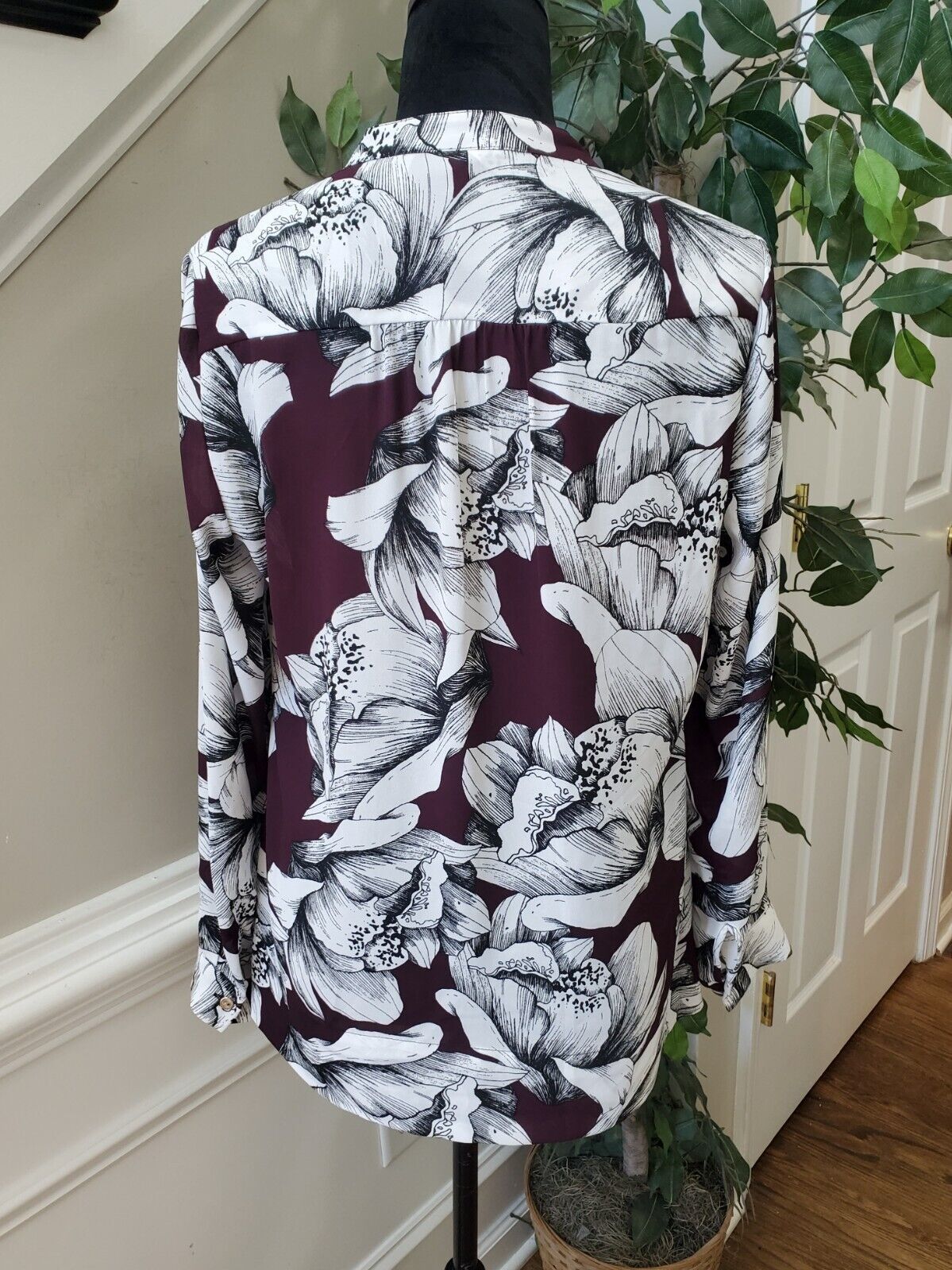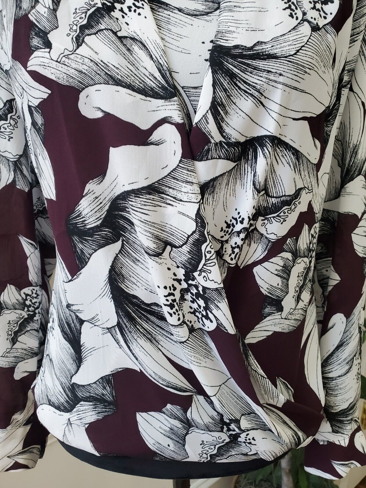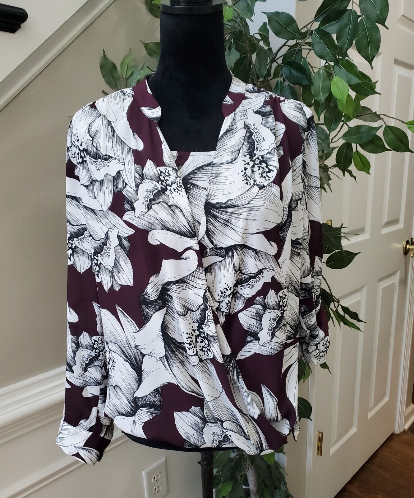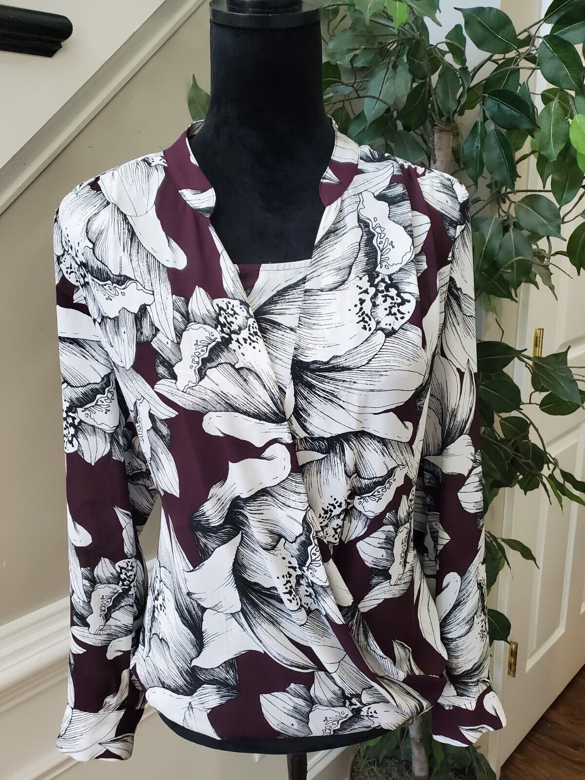 Alfani Women's White Floral 100% Polyester V-Neck Long Sleeve Top Blouse Size 10.