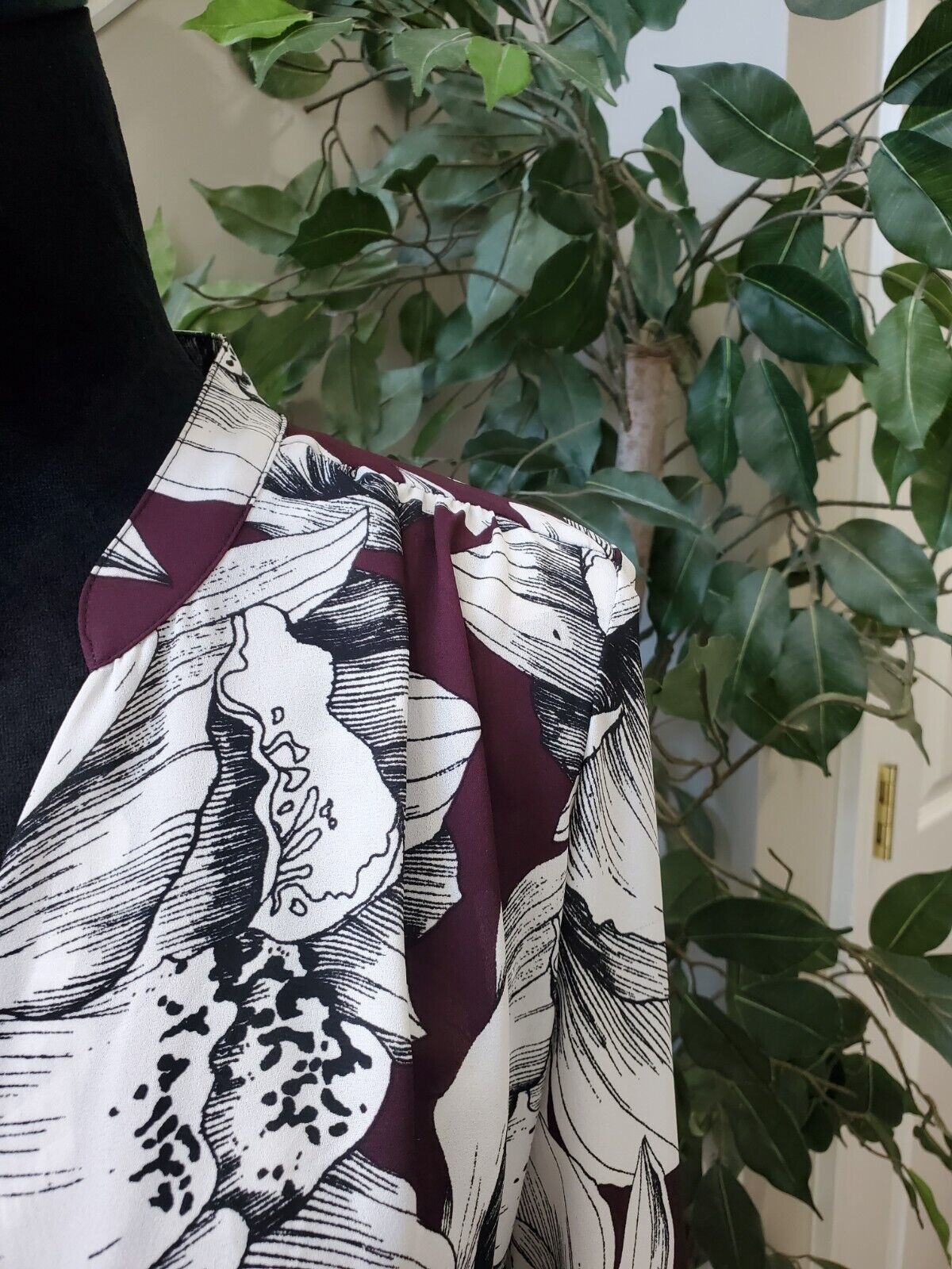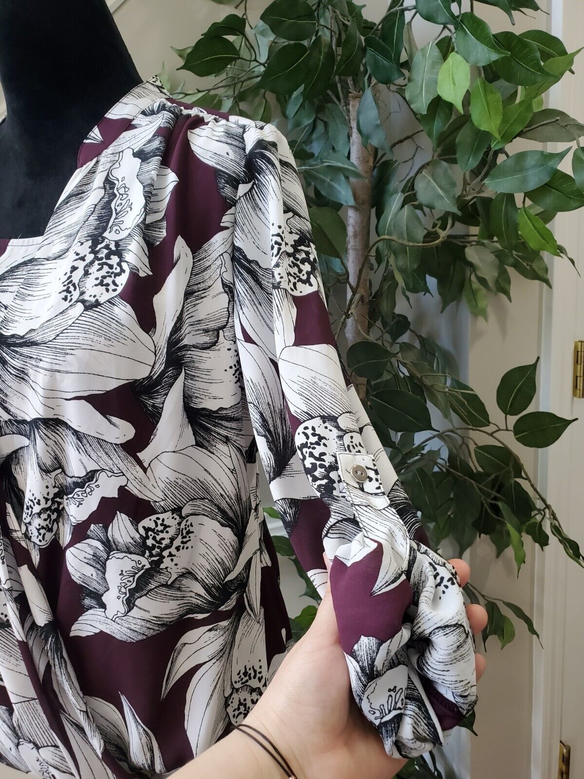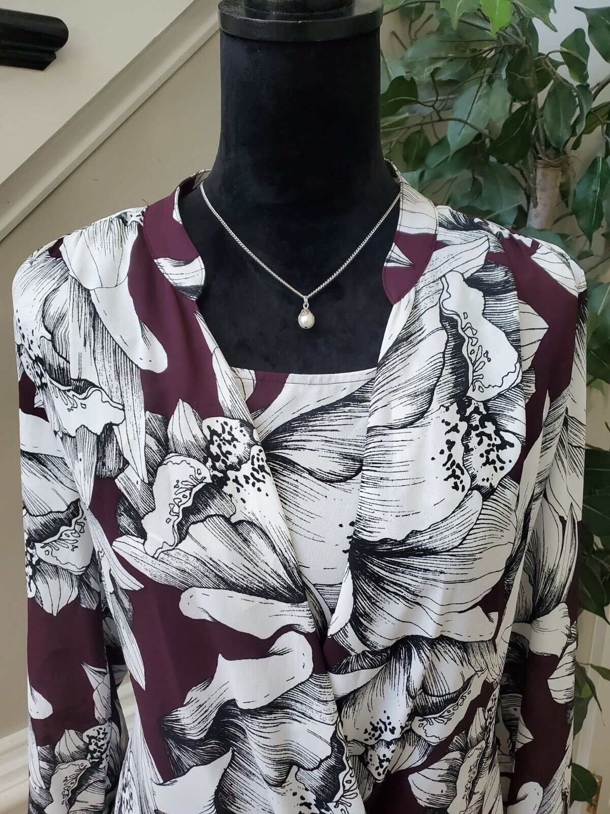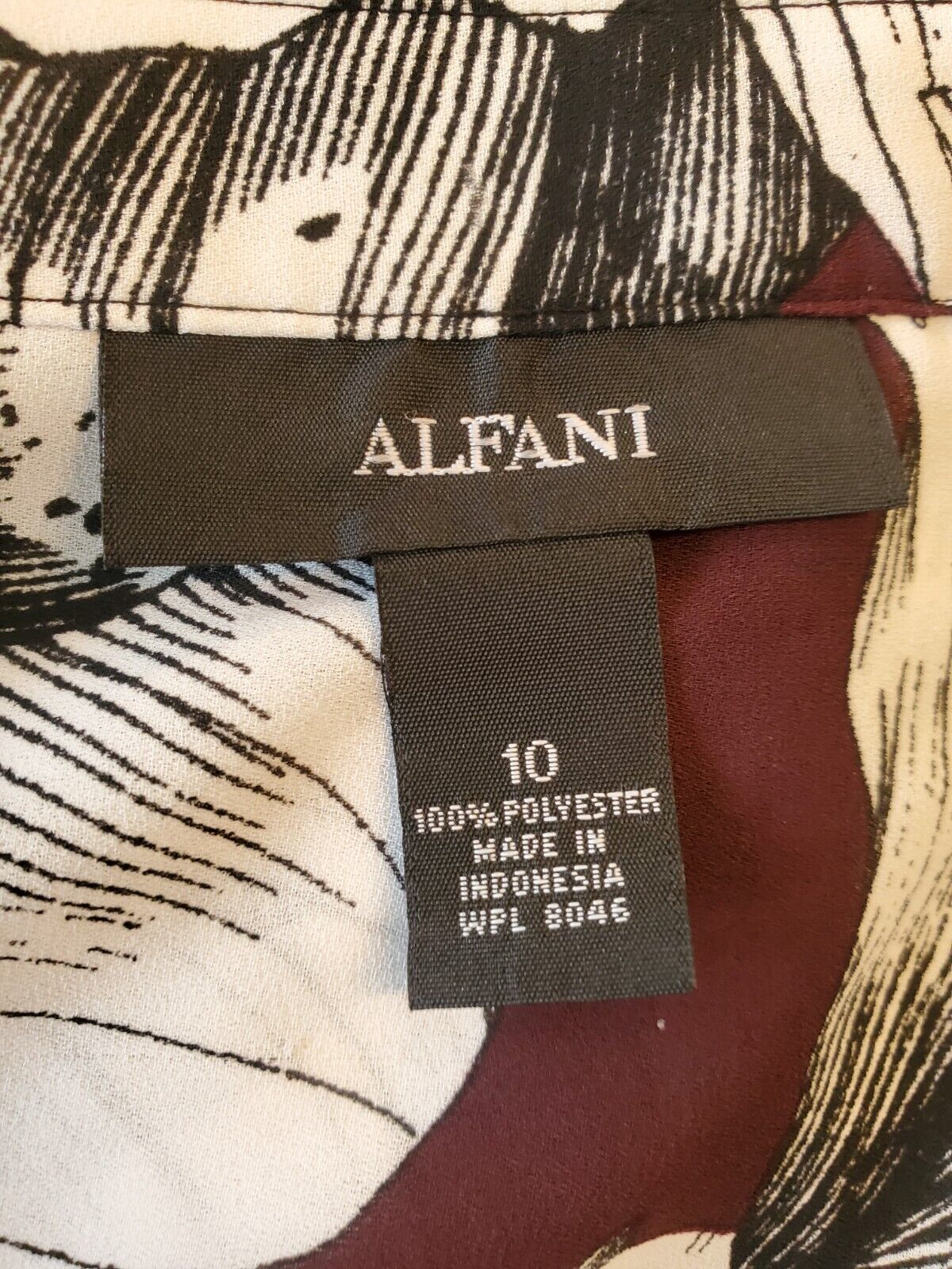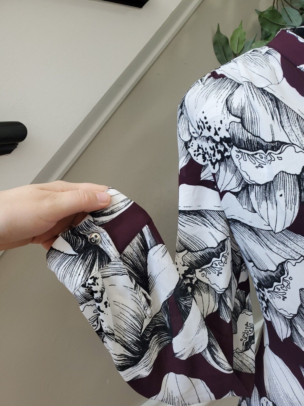 Alfani Women's White Floral 100% Polyester V-Neck Long Sleeve Top Blouse Size 10.