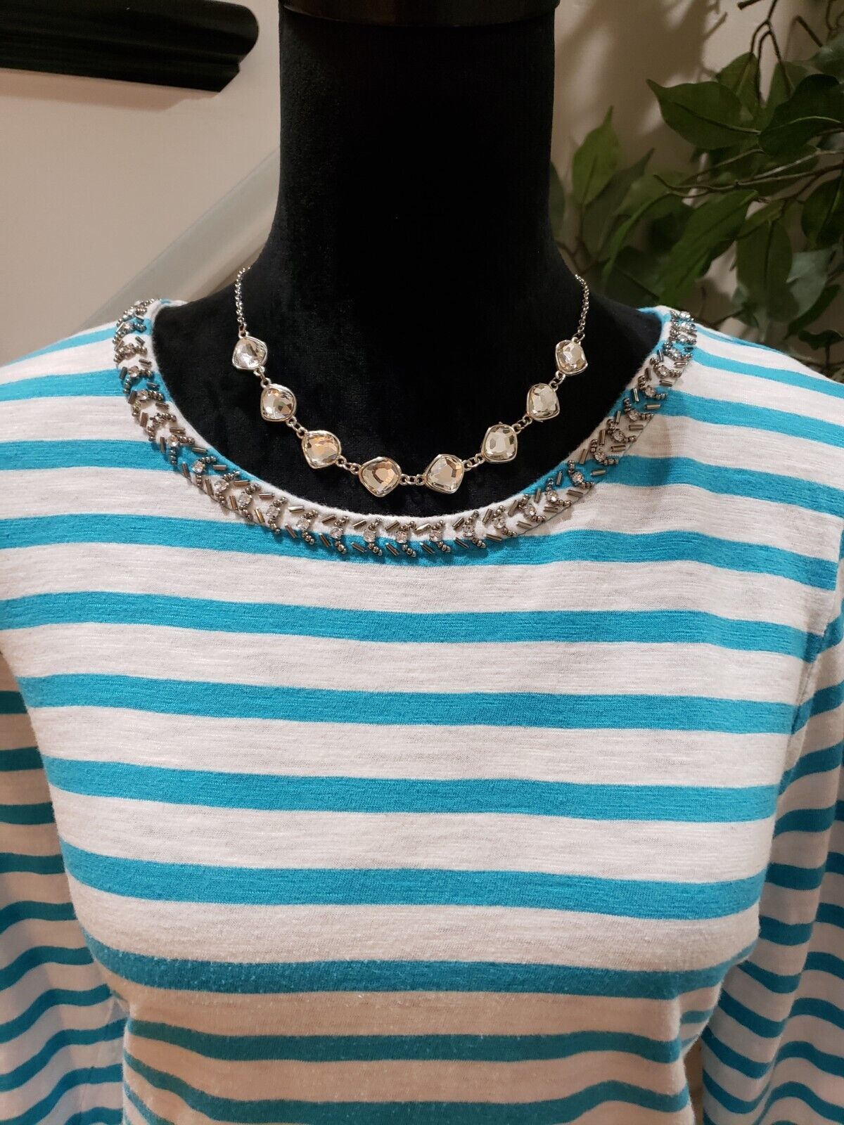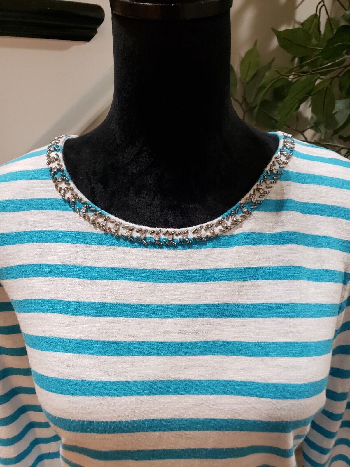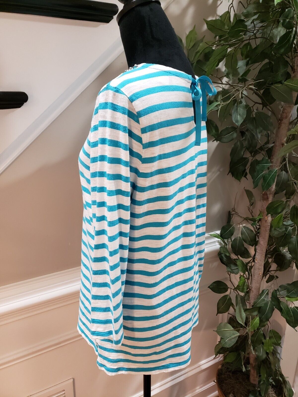 Chico's Women's Blue & White Striped Cotton Round Neck Long Sleeve Blouse 2/L