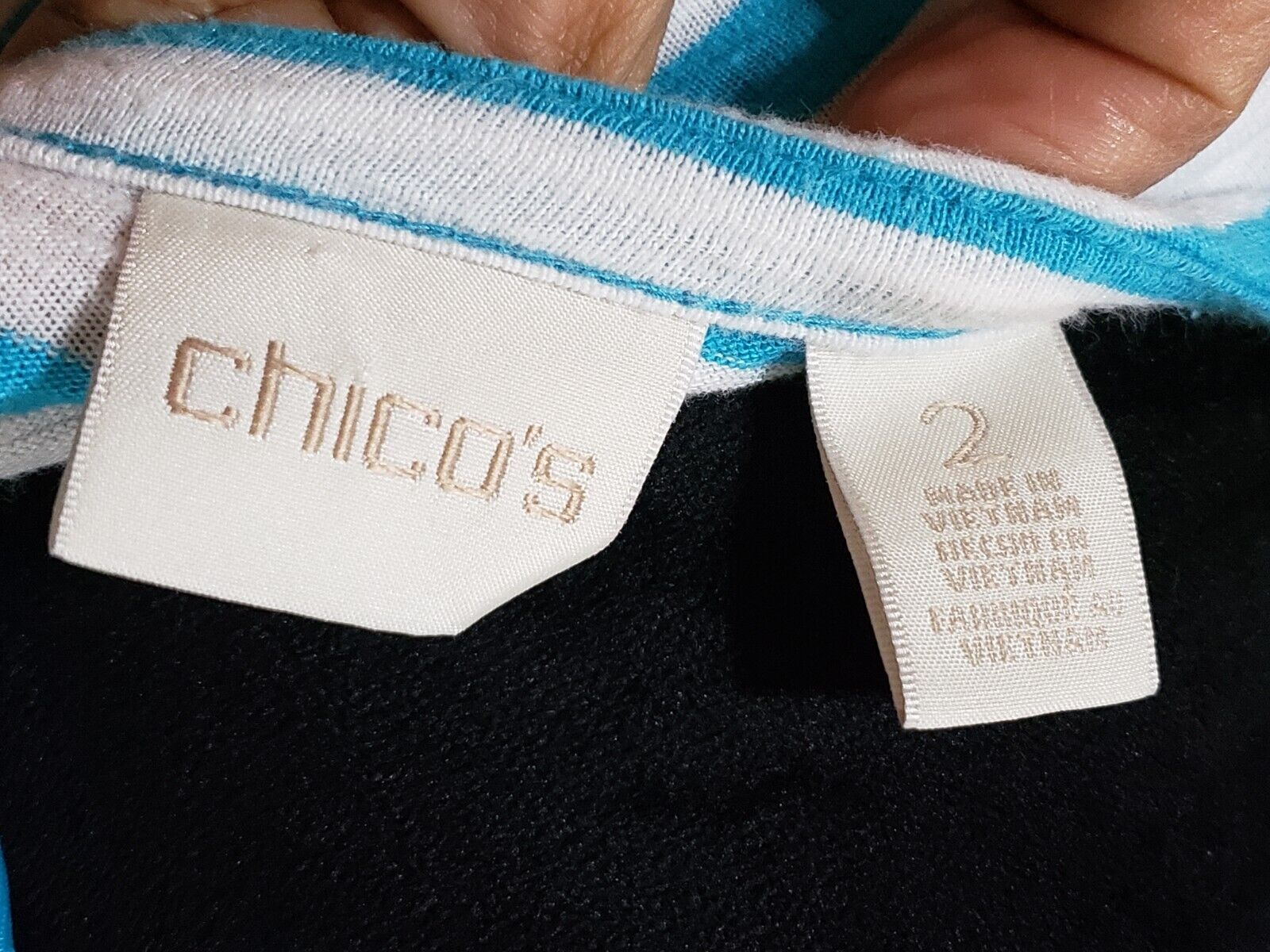 This Chico's women's blouse is perfect for any occasion, whether it's a party or a casual day out. The blue and white striped pattern adds a colorful touch to your wardrobe, while the long sleeves and lightweight fabric make it suitable for all seasons. The blouse features a round neck and a pullover closure, with a regular fit and size type.