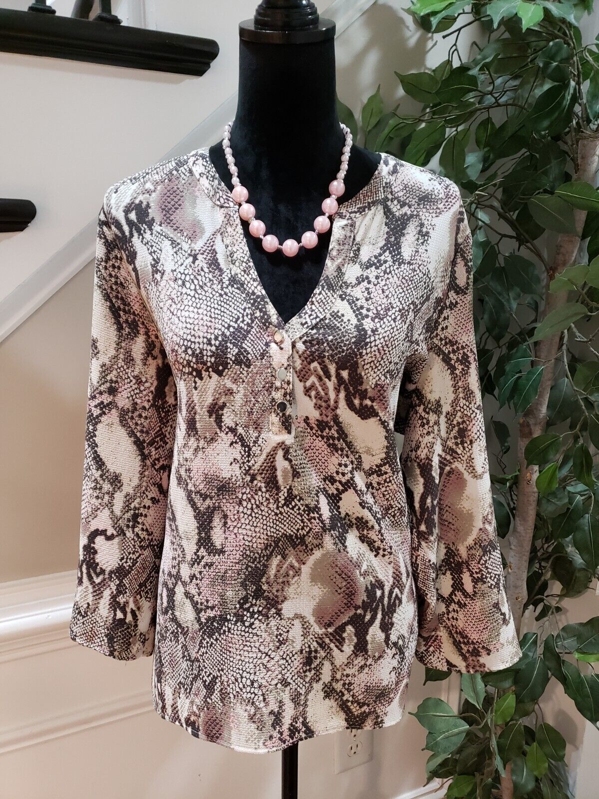 Notations Women's Multicolor Polyester V-Neck Long Sleeve Casual Top Blouse L