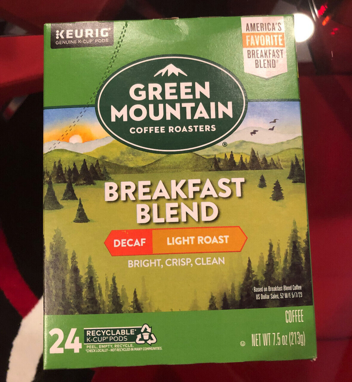GREEN MOUNTAIN COFFEE ROASTERS BREAKFAST BLEND DECAF COFFEE K CUP 24CT. FREE SHIPPING.