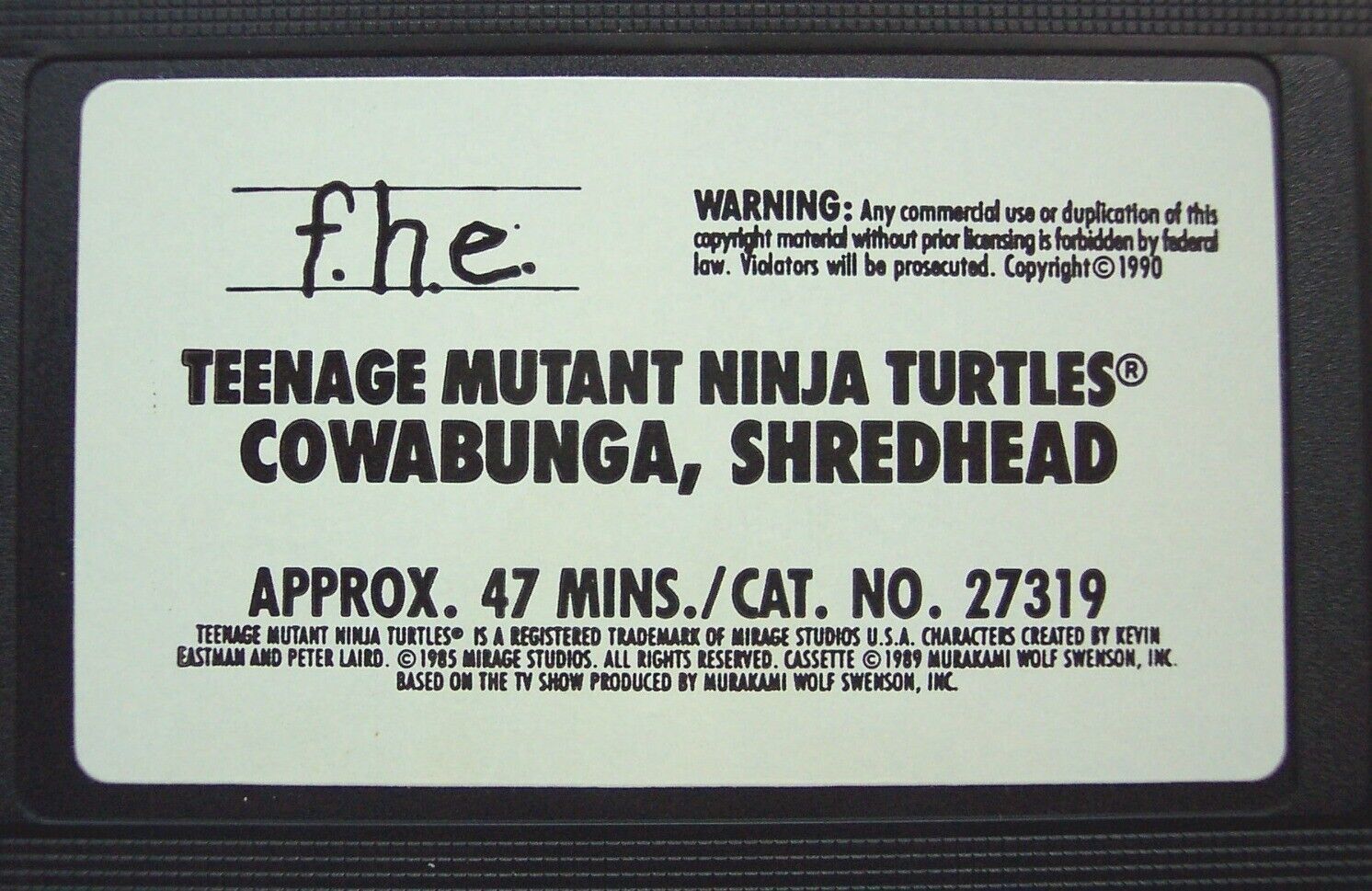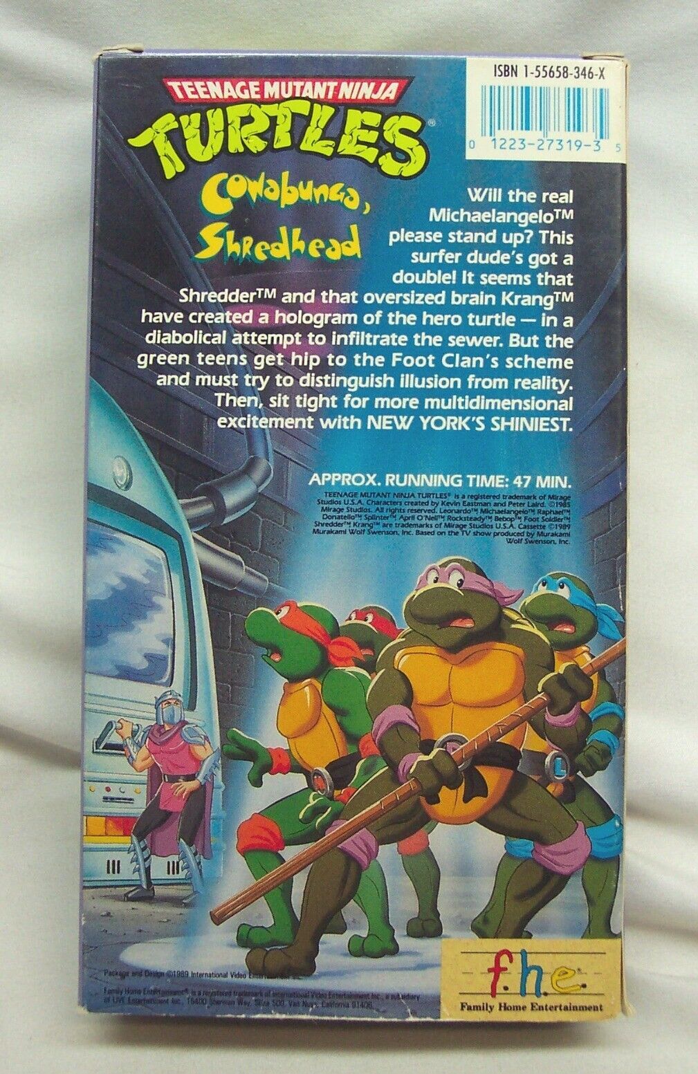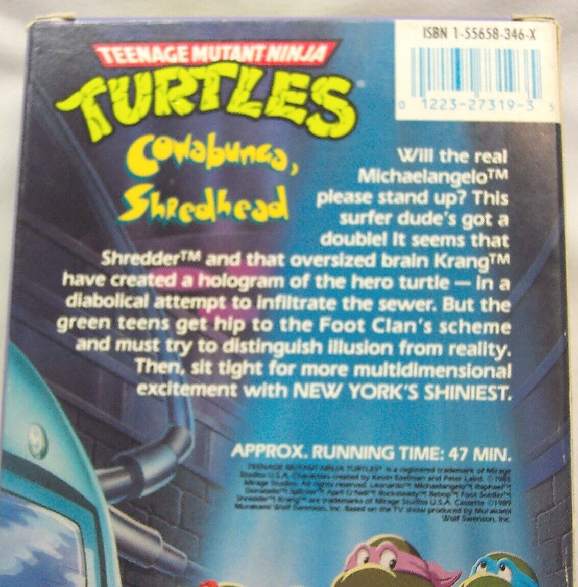 This is Vintage Teenage Mutant Ninja Turtles COWABUNGA, SHREDHEAD VHS VIDEO from 1989. It has a run-time of 47 Minutes. It is in Great condition. Combine auctions to save on shipping. EAG