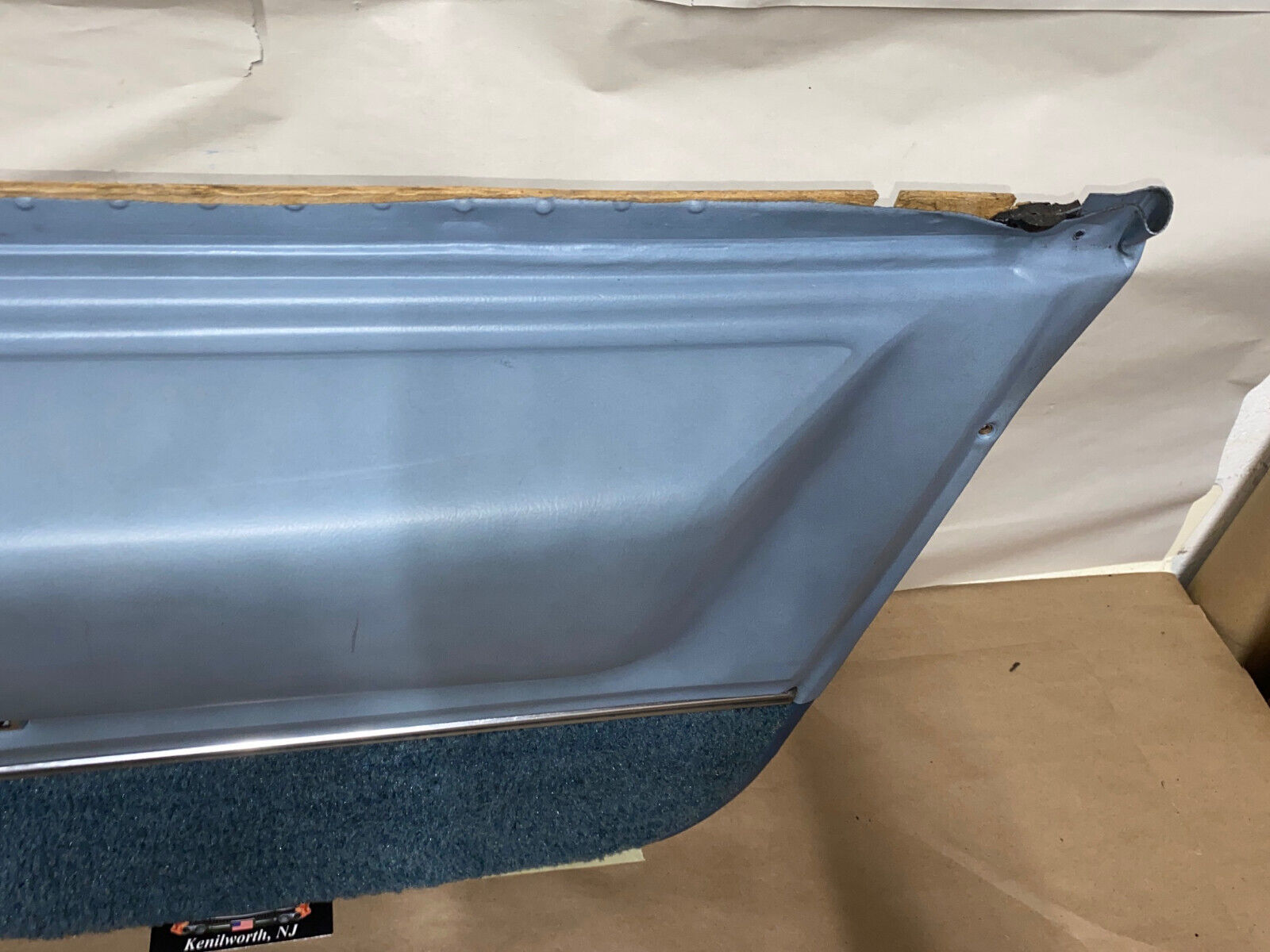 OEM passenger side rear lower door panel is in very good condition. There is one minor crack in the vinyl on top of arm rest, otherwise no cracks. Carpet is in