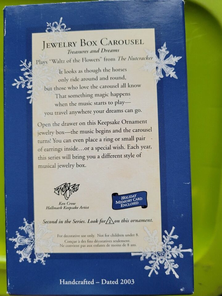 Hallmark Keepsake Ornament Jewelry Box Carousel 2003, Music, Movement