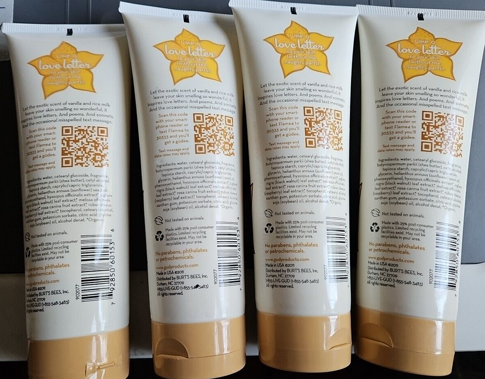 4 Pack Burts Bees gud Natural Body Lotion Vanilla 8oz. Free Fast Ship Burt"s