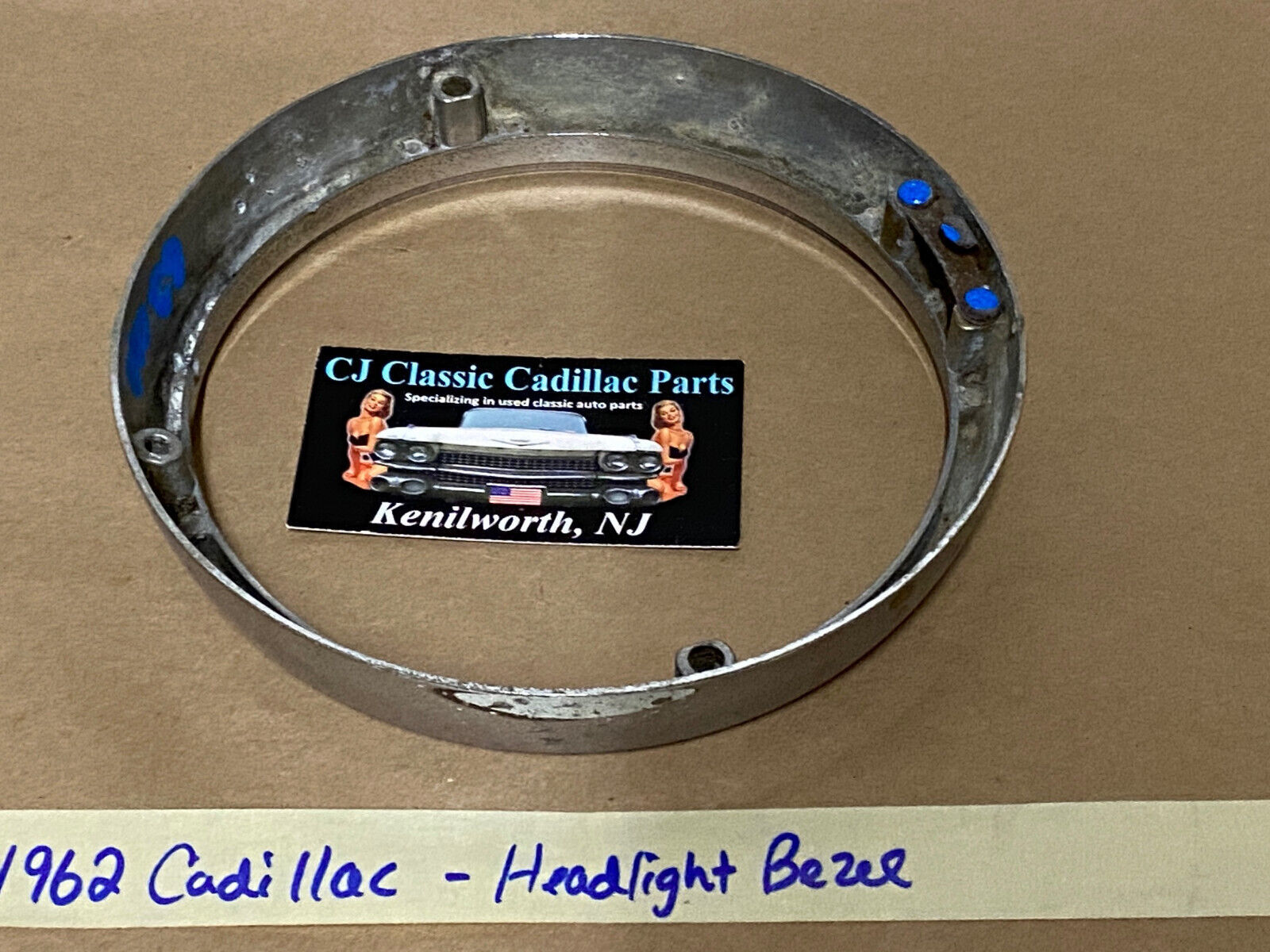 OEM 62 Cadillac HEADLIGHT CHROME BEZEL
