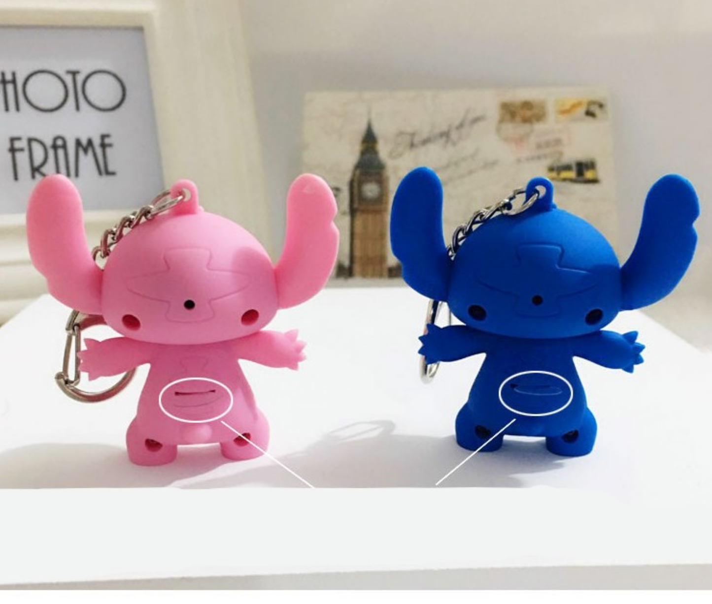 1PC Stitch OR Angel Cartoon LED + Sound Action Figure Keychain (Blue, Pink)