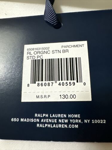 RALPH LAUREN ORG SAT BORD WHITE PARCHMENT 2pc STANDARD PILLOWCASES SET NIP $130