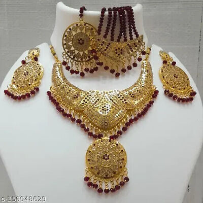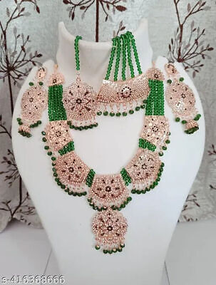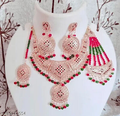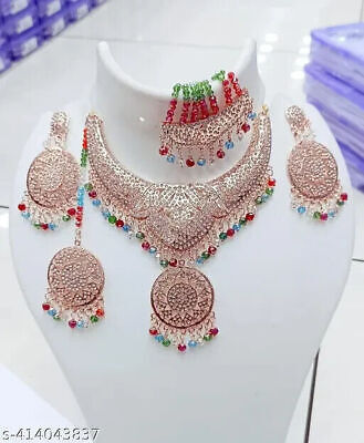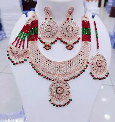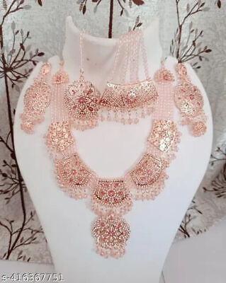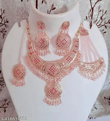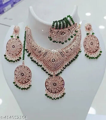 Diamantes y cristales de alta calidad, collar de oro rosa, conjunto de joyas para novia, conjunto de joyas Maangtika, joyería de boda