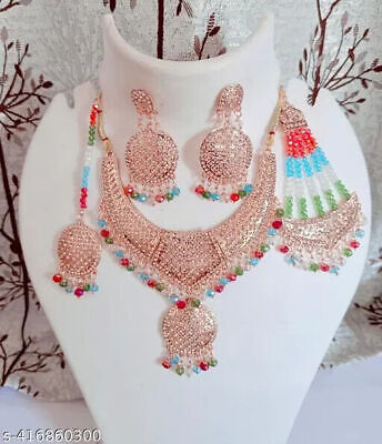 Juego de joyas chapado en oro rosa con cristal, juego de joyas tradicionales para mujeres y niñas 520