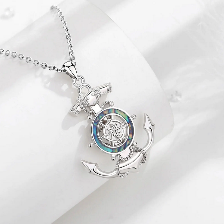 Exquisite 925 Sterling Silver Rotating Abalone Shell Compass Anchor Pendant