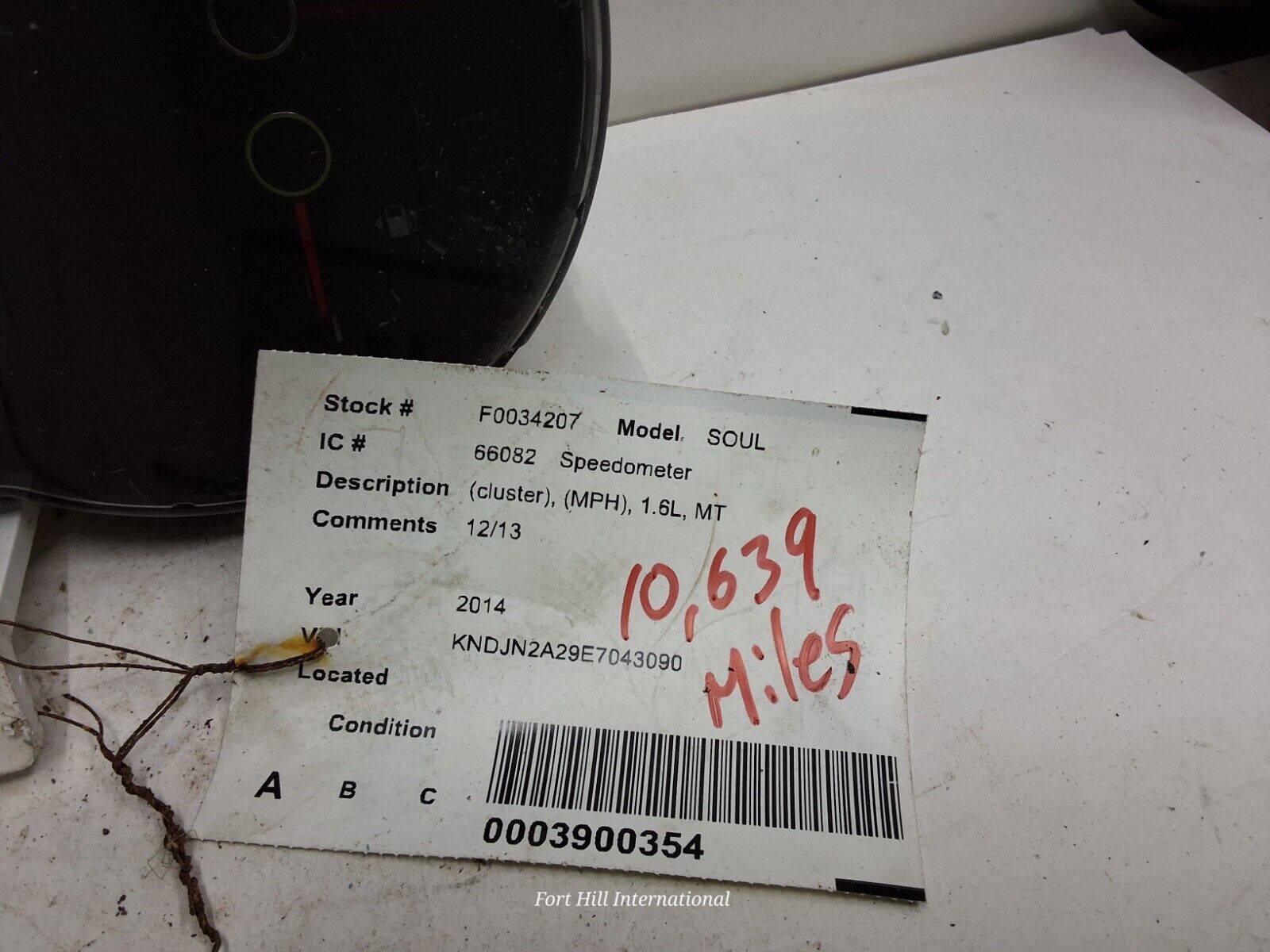 2014 to 2015 Kia soul MPH speedometer for vehicles with a 1.6 L engine and manual transmission. Showing 10,639 mi.