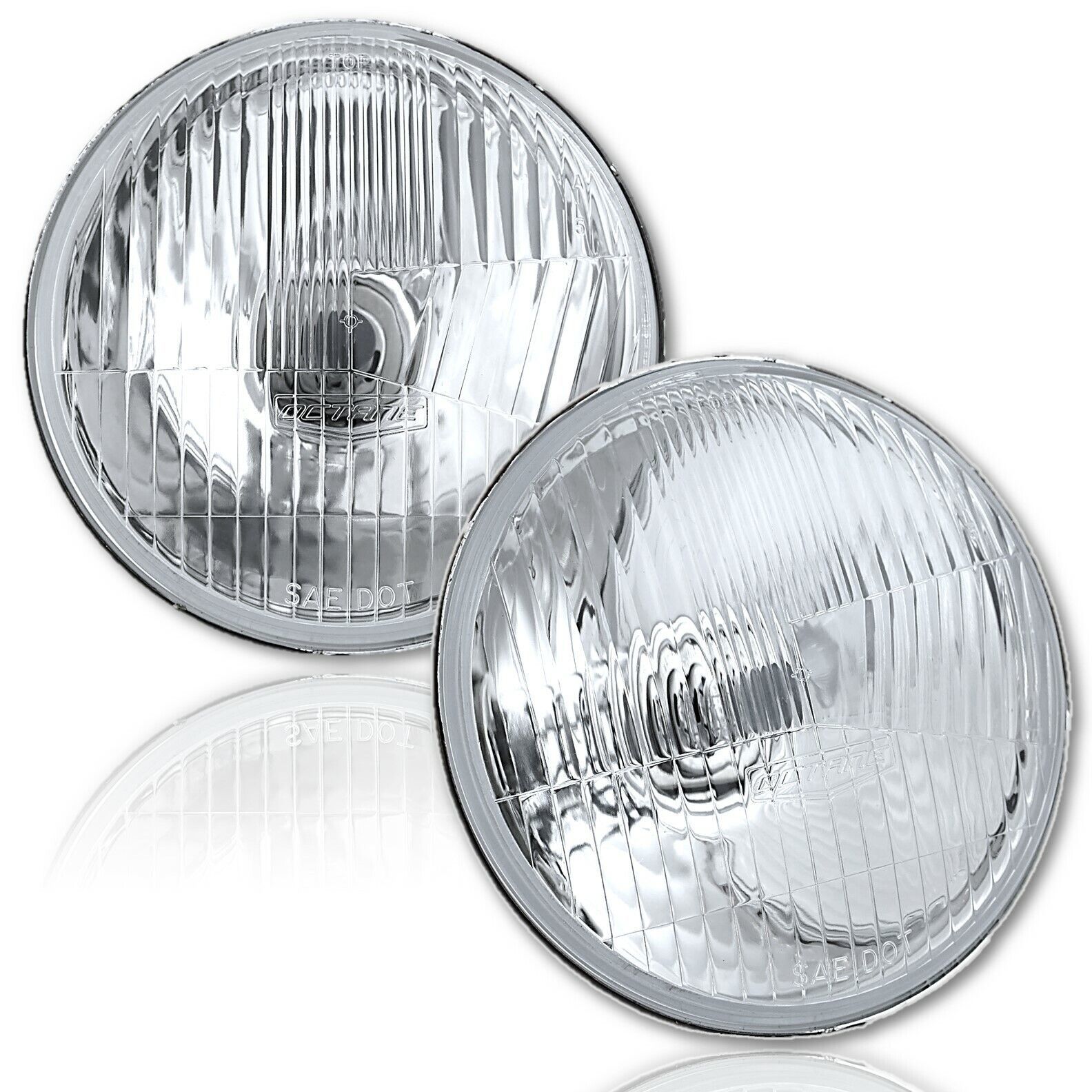 This listing is for a new pair of 5 3/4" stock glass lens - metal back low beam headlight bulbs. This set includes (2) low beam headlights with high intensity LED light bulbs (no wiring modification needed). These have the original 3-prong design on the back so they will plug right into your original wiring harness plugs. These will fit any car or truck that has 4 round glass headlights and are designed to fit into the original buckets. Each bulb is 5 3/4 inches in diameter. These are glass and we will take extra care in packaging. DOT / SAE approved