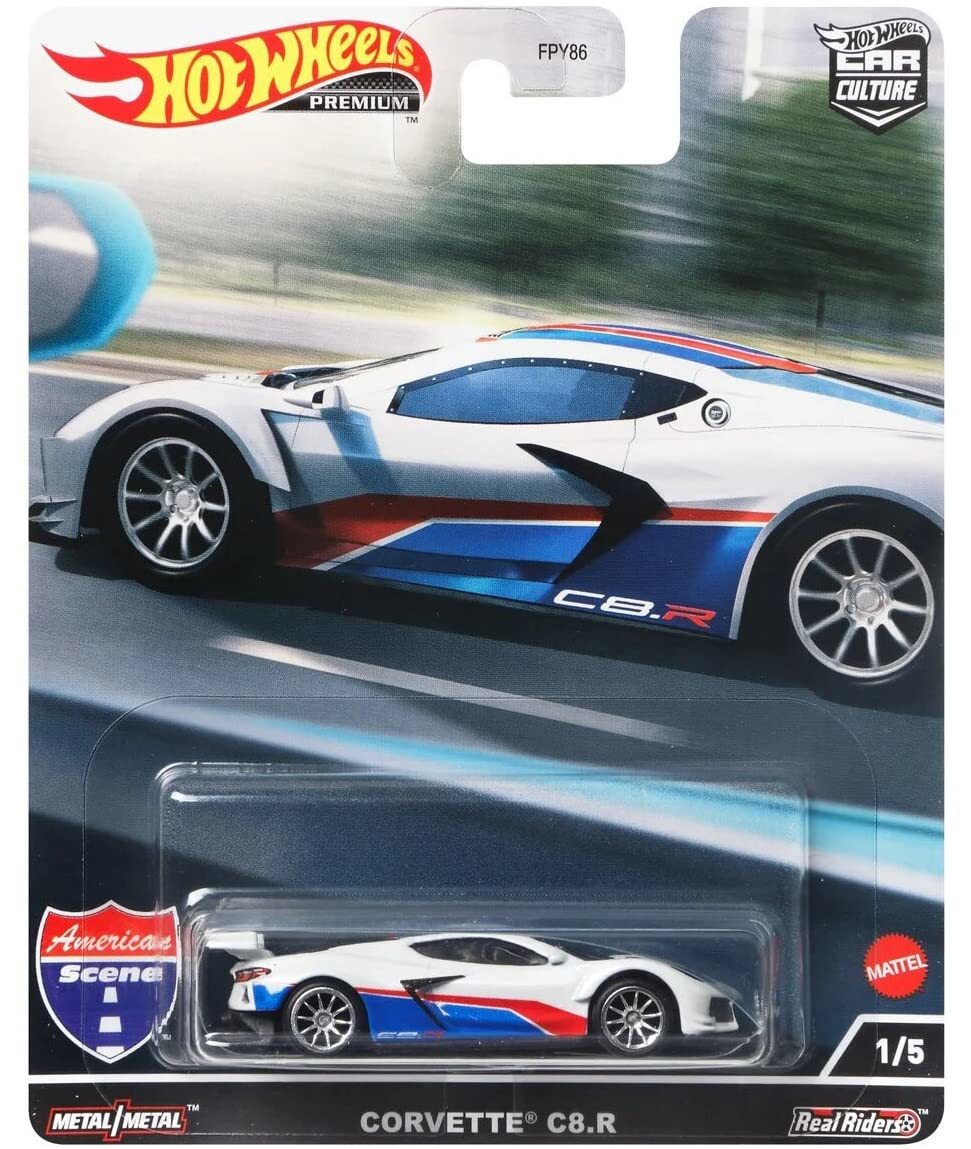 Chevy Corvette C8.R Pearl White with Red and Blue Stripes American Scene Car Cul