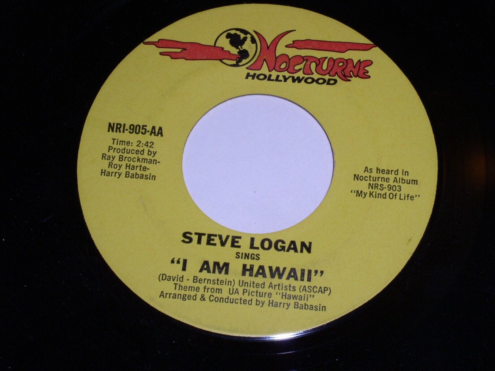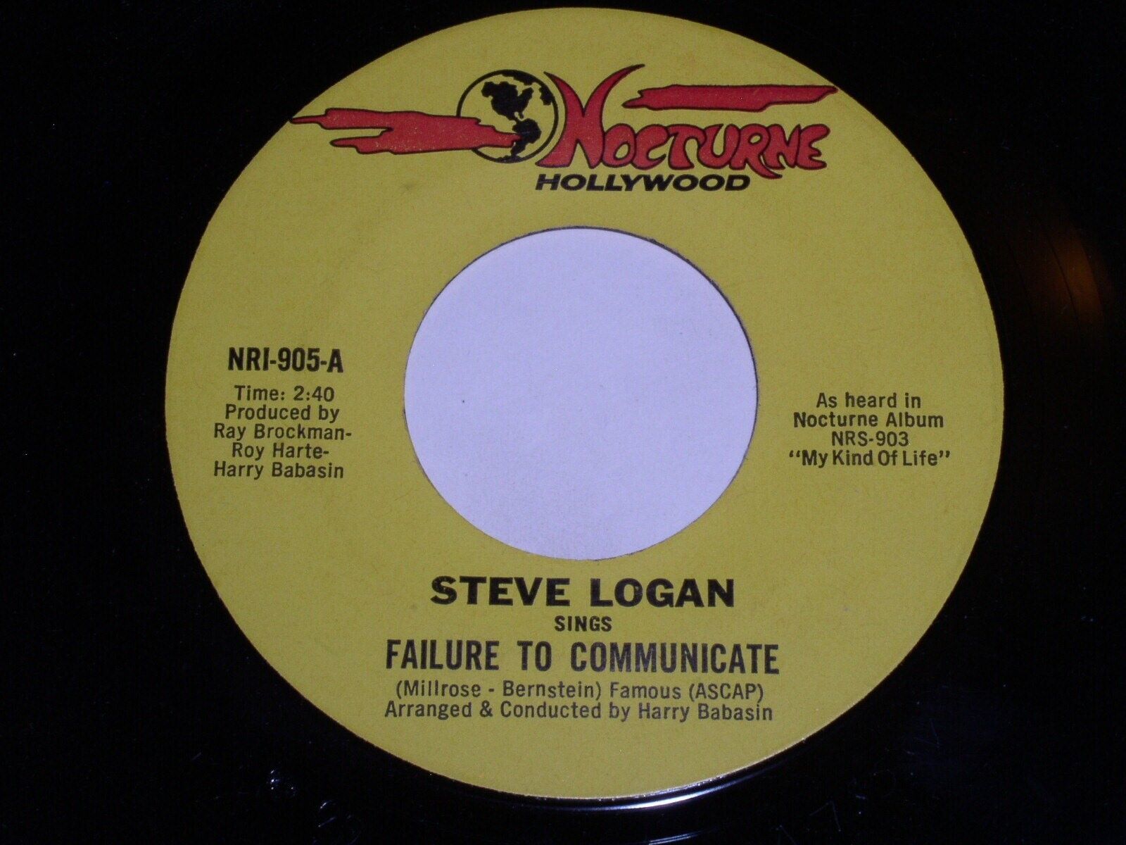 This is a vintage 45 rpm phonograph record by Steve Logan, entitled, "Failure To Communicate". Flipside: "I Am Hawaii". Record label Nocturne NRI-905.