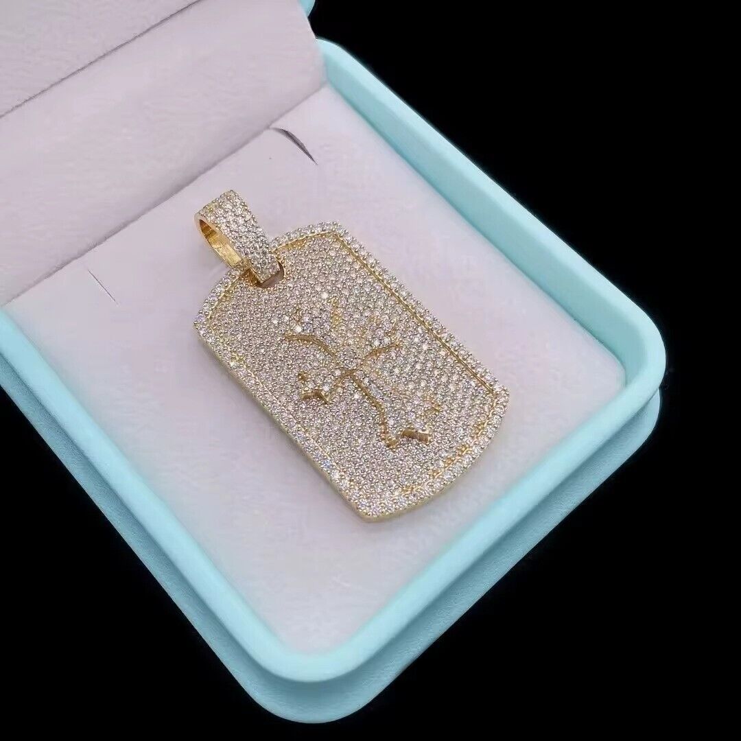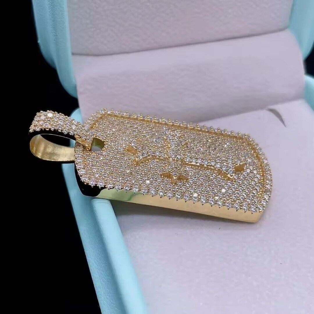 3Ct Lab Created Diamond Cross On Bar Design Men's Pendant 14K Yellow Gold Plated