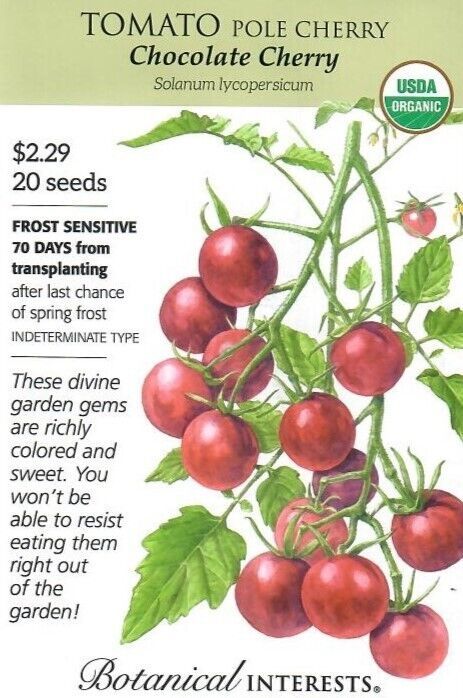 SKMO Tomato Chocolate Cherry Organic Vegetable Seeds Botanical Interests