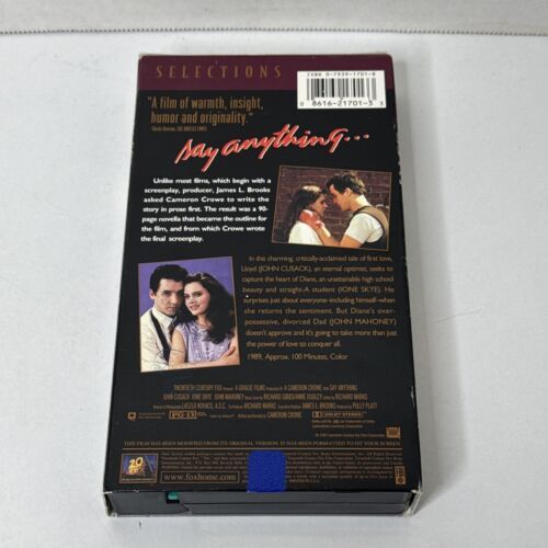 Say Anything VHS Tape 1998 John Cusack, Ione Skye, John Mahoney, Cameron Crowe