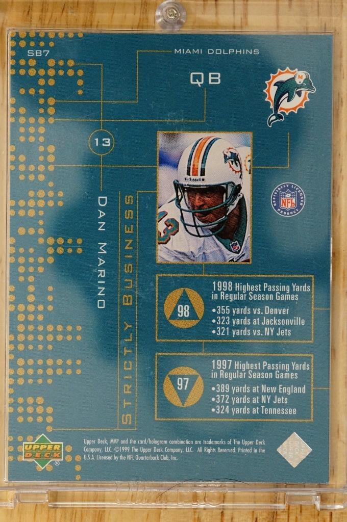 DAN MARINO 1999 Upper Deck MVP Strictly Business SB7 Card Miami Dolphins - present in a one touch. Raw and Ungraded. No smoke or pet odor.